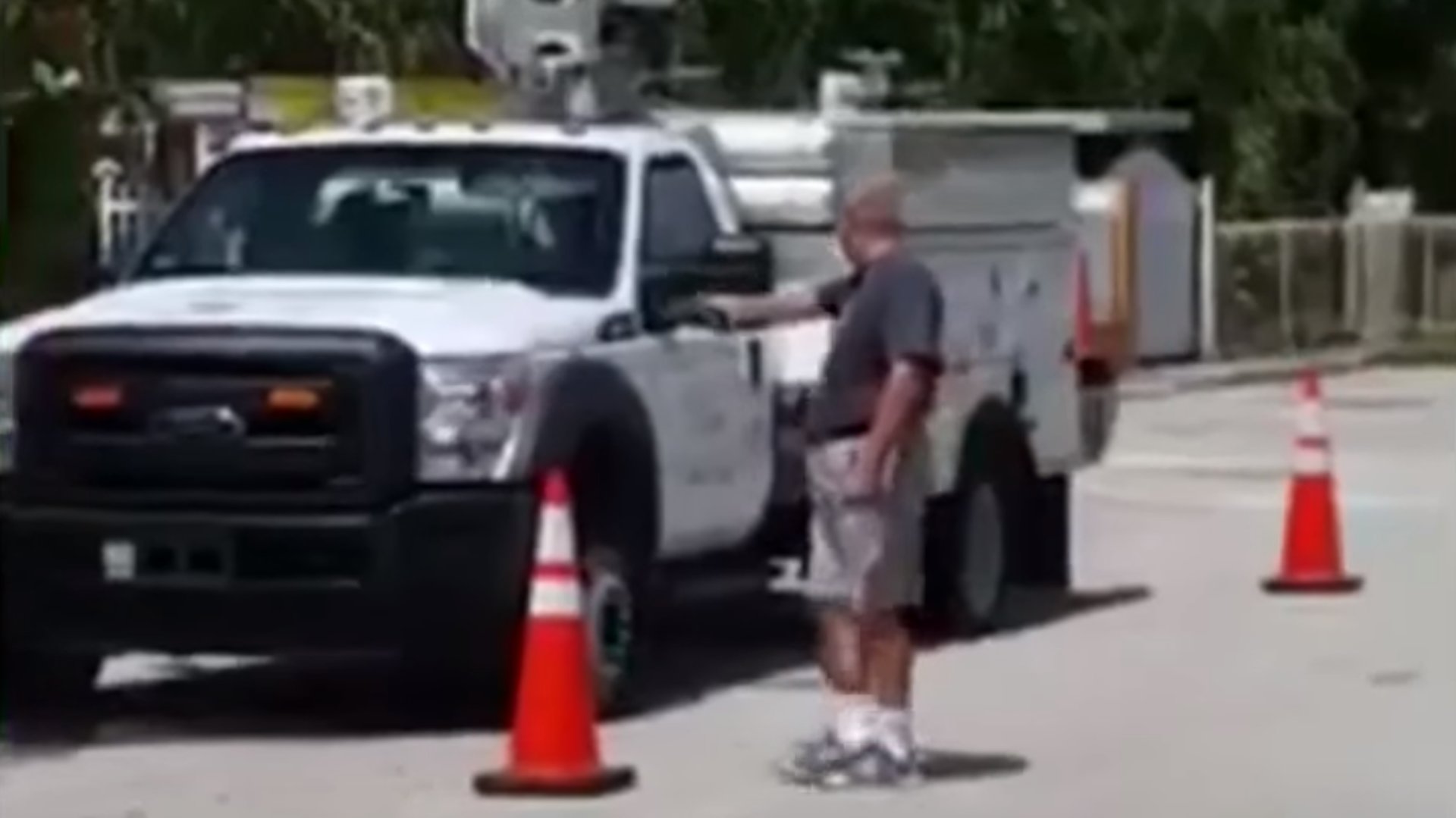 Hialeah Police Sgt. Carl Zogby told WSVN that the AT&T employees were working on a line outside Jove’s house when the retired Miami-Dade firefighter approached them and demanded they move the trucks. When they informed him they’d move as soon as the job was finished, Jove went back inside and emerged “moments” later with a revolver, firing away and reloading several times. You can hear the panicked worker on the ground telling a 911 operator that Jove is “shooting out the tires, and he’s shooting the engines on the trucks and everything!”