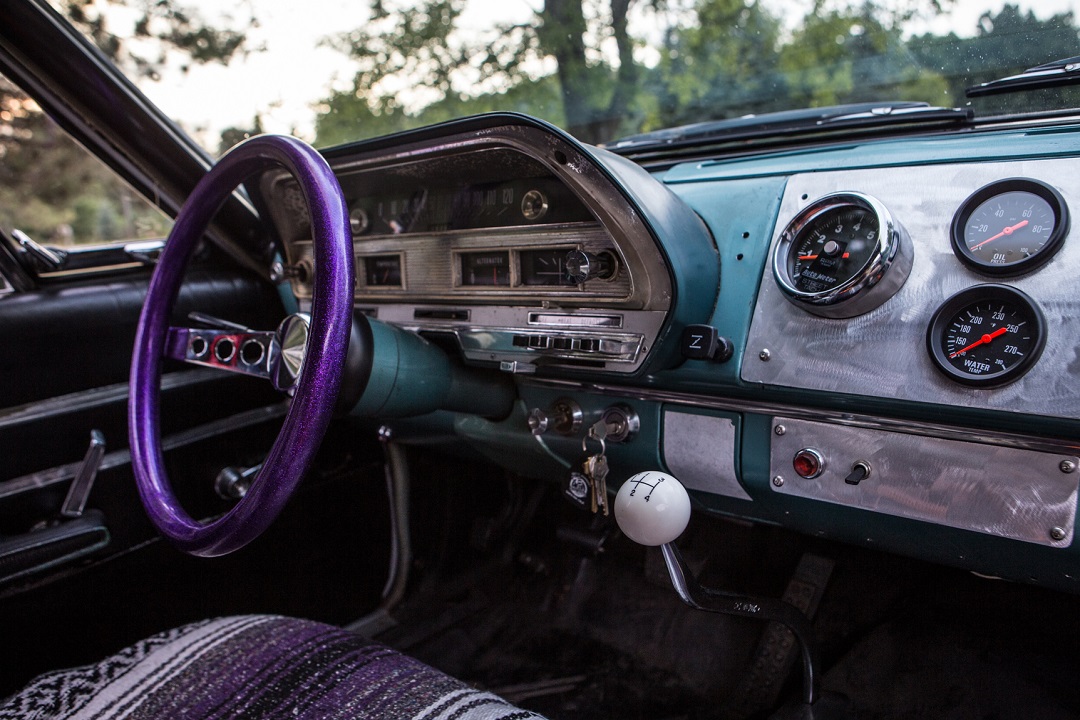 Four Weber carburetors and a four-speed Hurst shifter had already been installed, and in their garage, Hurlin and her husband added a McLeod clutch and a roll cage. They saw the potential in the modifications already on the car, which attracted Hurlin to it in the first place. Once they got the wagon in their garage, they rebuilt the shifter and transmission, fine-tuned the carbs, and did quite a bit of re-wiring to untangle a rat’s nest of splices and connectors.