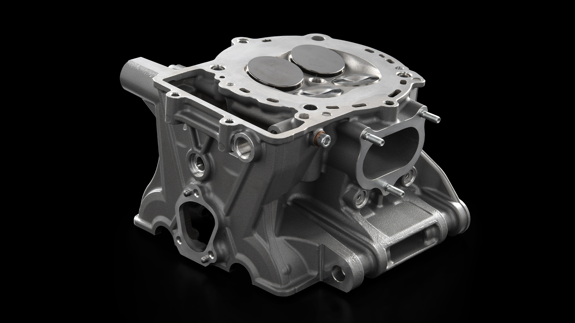 Two balance shafts ensure that the vibrations at such high engine speeds are likewise kept in check. Other interesting details include several magnesium components, including the alternator, clutch, and head covers. The massive 46.8 mm intake valves are also made from titanium, although despite all of this lightweight metal bolted to the engine, no weight figure was specified.