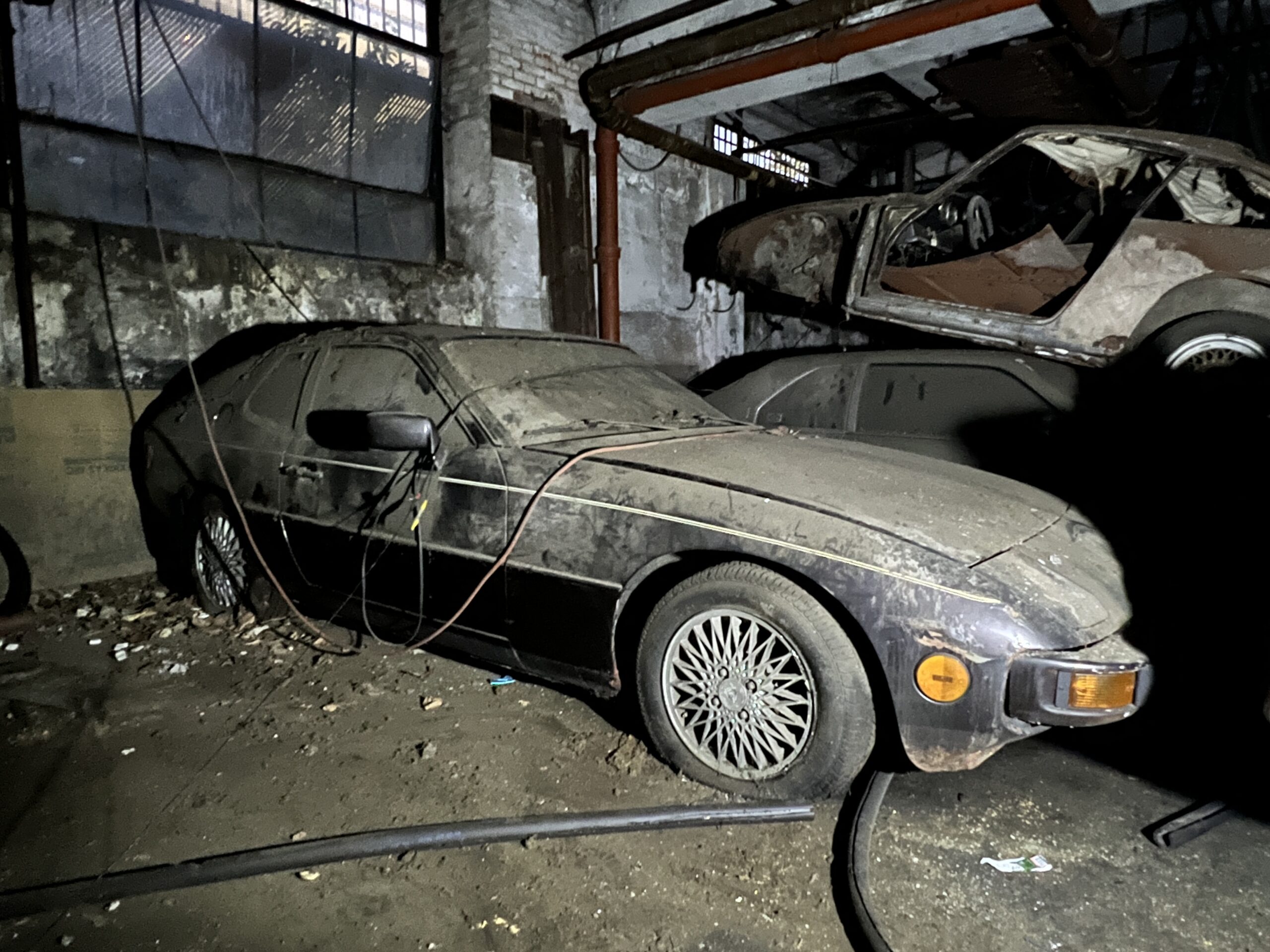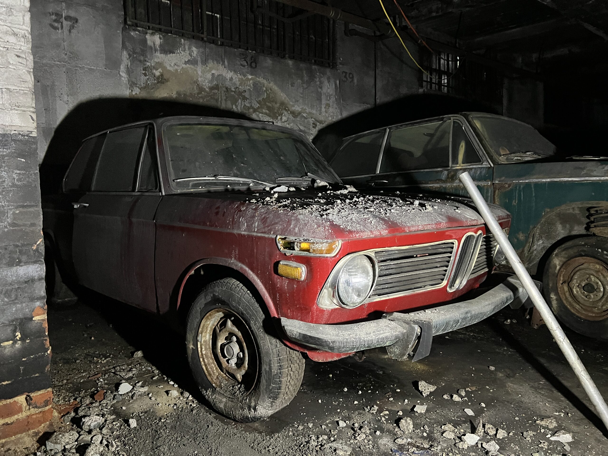 Finally, it was time to visit the basement. “You might not like what you see down here,” Chris warned as we descended the ramp into darkness, flashlight in hand. “It wasn’t always this bad.” The smell of standing water hit me immediately. Chris explained that the demo crews had removed part of the roof and had been drilling holes in the floor, but water had been coming in for far longer than that. This seems to have been the European wing, with two BMW 2002s, an E21, and two Triumph TR6s lining part of a wall next to a Fox-body Mustang. More VWs, including a Type 3 Fastback, filled a nearby corner. Opposite them, a Porsche 924 Turbo and what was left of another early 911 sat among a navy fleet of Lincoln Continentals, with the 911 perched precariously atop one of the land yachts. An early Corvair and C3 Corvette represented GM, and a Jaguar Mark X with a lovely red leather interior and manual transmission was the resting spot for a couch.