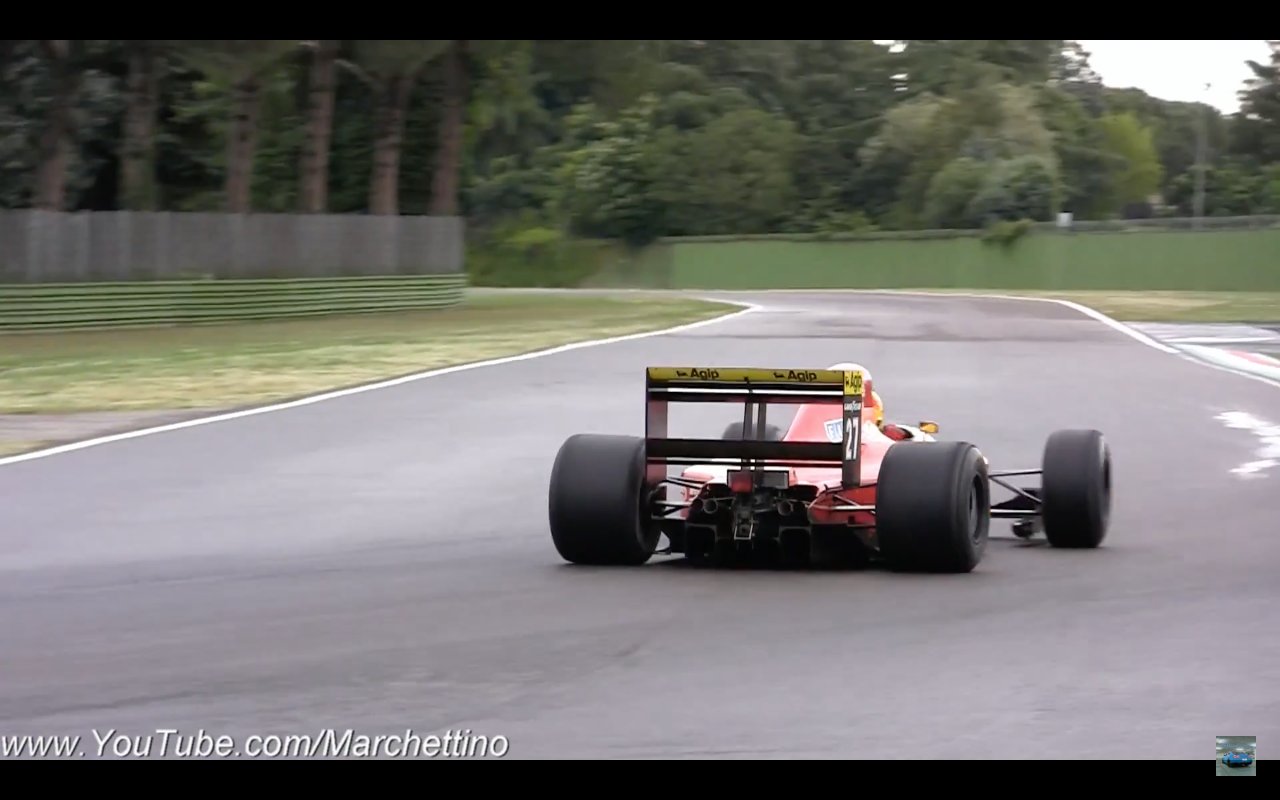 In this video, courtesy of YouTube channel Marchettino, we see the 1991 Scuderia Ferrari 643 being driven around Autodromo Enzo e Dino Ferrari, or as most of us know it, Imola. The Ferrari 643 was driven by Jean Alesi, Alain Prost, and later, after Prost was fired by Ferrari for saying, “a truck would be easier to drive than this car,” Gianni Morbidelli. It was powered by the Tipo 037 V12 engine, with 3,499cc of displacement, and its cylinders banked at 65 degrees. It had a 13:1 compression ratio and made 710 horsepower at 13,800 RPM.