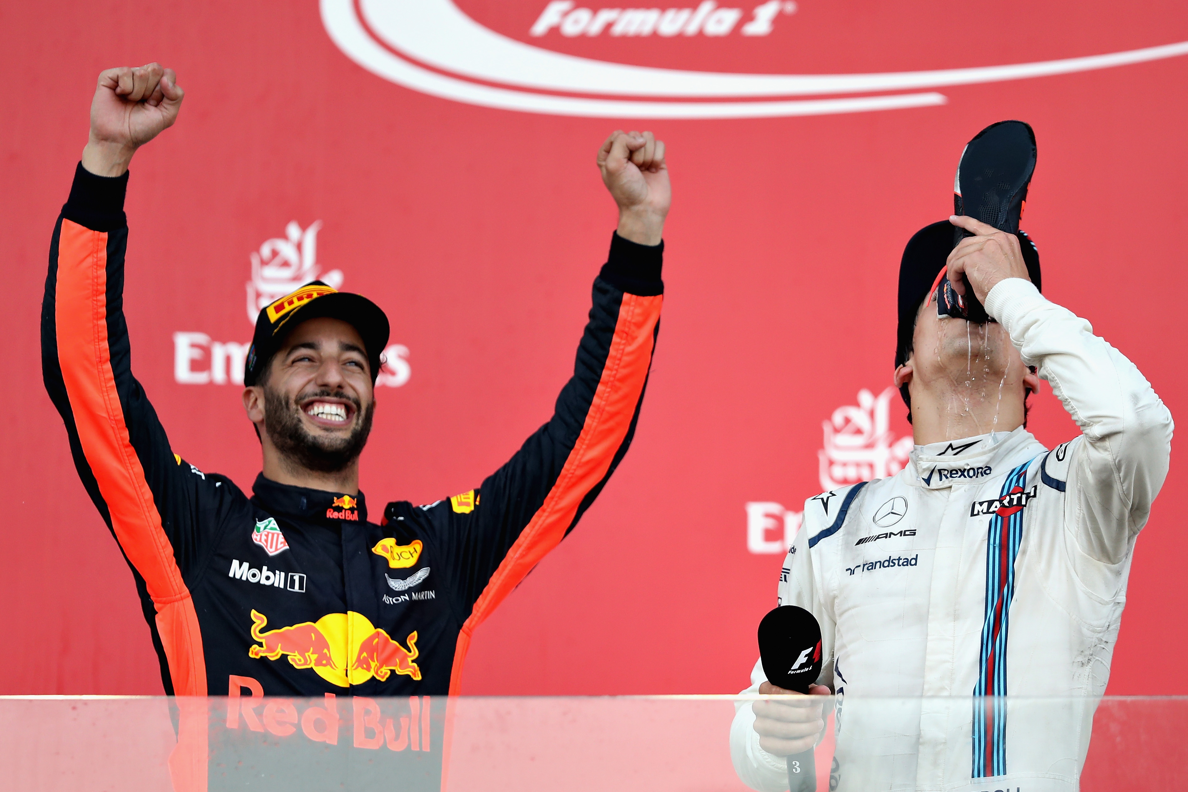 And of course, to celebrate his first podium, Ricciardo got Stroll to have a drink from Ricciardo’s shoe.