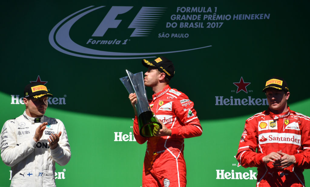 Ferrari ace Sebastian Vettel started on the front row at Interlagos on Sunday alongside Valtteri Bottas. Holding P2 on the grid, he jumped to the lead early and commandeered the role through the majority of this year’s Brazilian Grand Prix. After 71 laps, he retained the number one spot and beat out Bottas as well as Kimi Raikkonen, gaining his first victory in seven races after a dominant first half of the season.