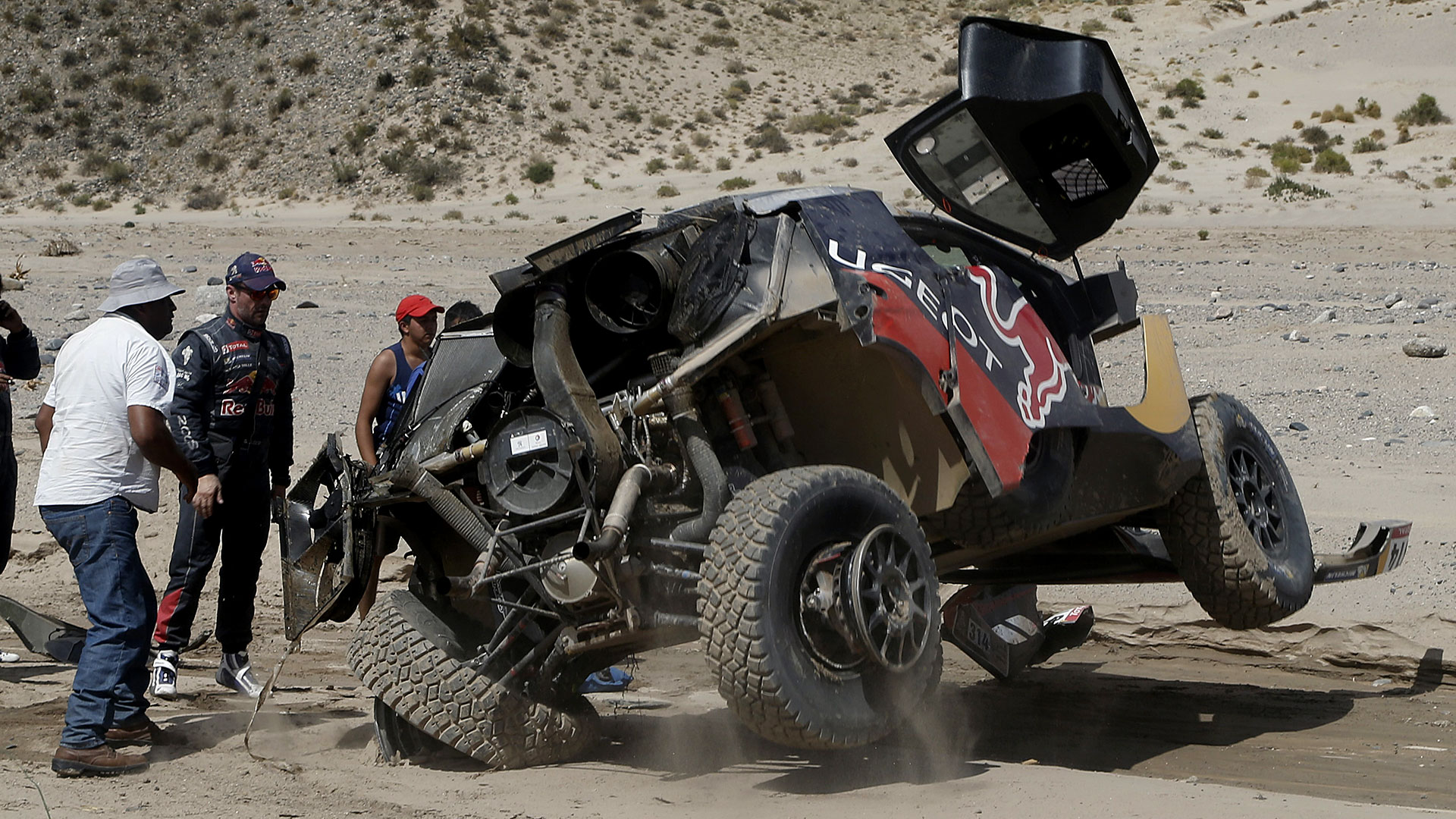 I don’t know about you, but I’ve wrecked a couple of cars. Maybe more than a couple. After none of them was my first thought, “I’d better start yanking off pieces of the bodywork so I can drive away.” But I’m not nine-time WRC champion Sebastien Loeb who, with co-driver Daniel Elena, crashed his #314 Team Peugeot-Total 2008 DKR16 diesel truck on January 11.
