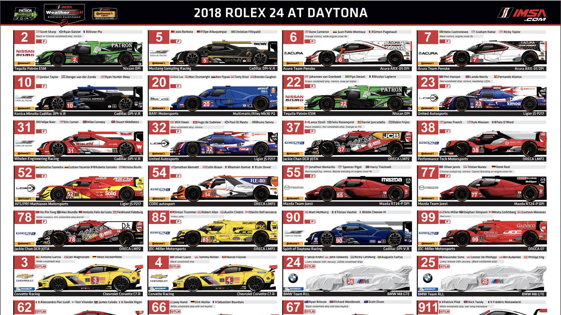 The guide will be updated as the event draws closer and changes are made to the grid. You can expect to see at least one difference from the current version by Thursday as BMW plans to unveil the official 2018 livery for its all-new M8 GTLM competitor.