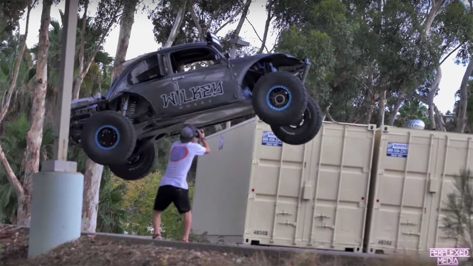 This is a video of Blake Wilkey. He looks kind of like Jeff Spicoli and, from the looks of his Instagram feed, has a tendency to injure himself. Blake likes to ride motocross and also build things in his garage. Once, he built a supercharged Volkswagen Beetle off-road racer. On its underside, he installed a custom skid plate with a Great White shark graphic, so that when he pulled wheelies at Glamis or Ocotillo Wells, it’d look like Jaws was surfing the dunes. Which is why this video is called “Shark Attack.”