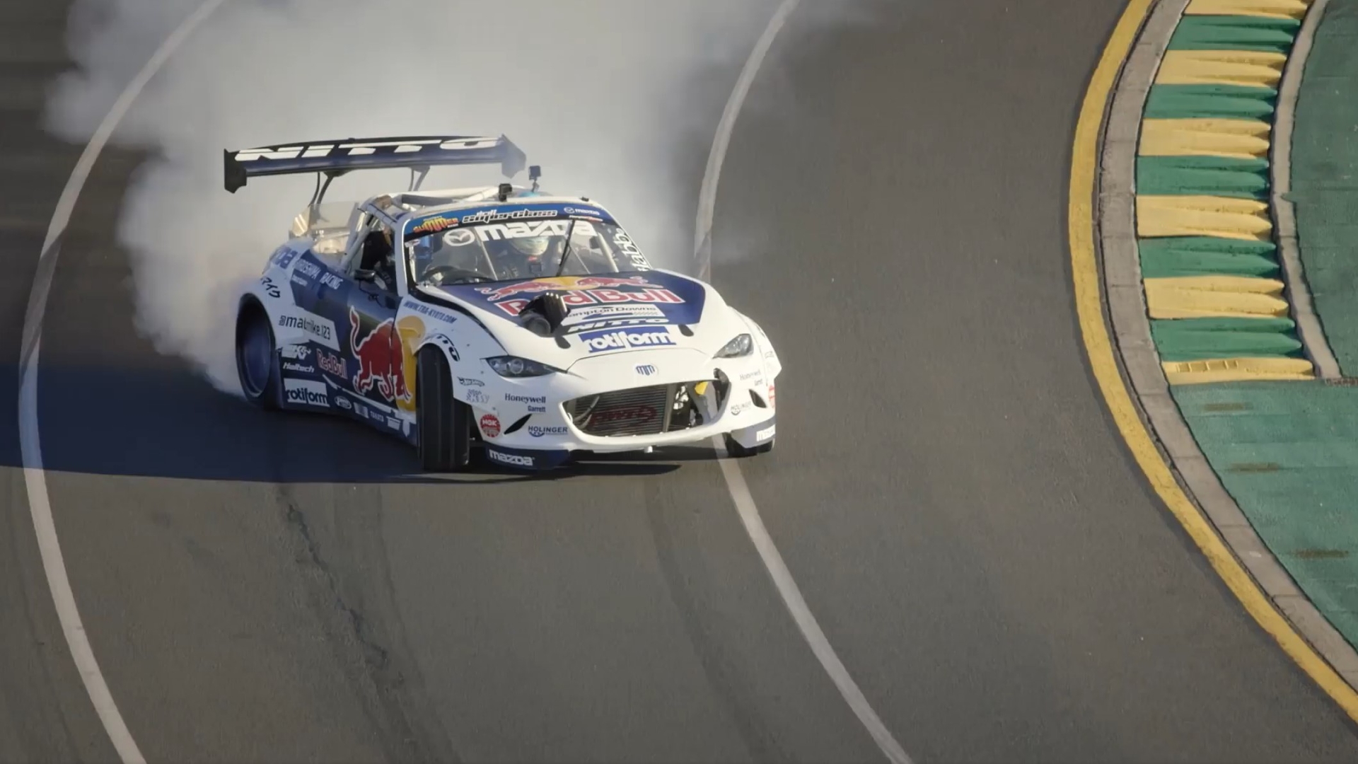 Red Bull sponsored driver Daniel Ricciardo is coming into his eighth season in the FIA Formula 1 Championship. He is normally clipping apexs fast and smooth on track, but fellow Red Bull sponsored drifter Mad Mike Whiddett recently showed him an alternative way to drive. Whiddett took Ricciardo for a very spirited ride around the Melbourne Grand Prix circuit.