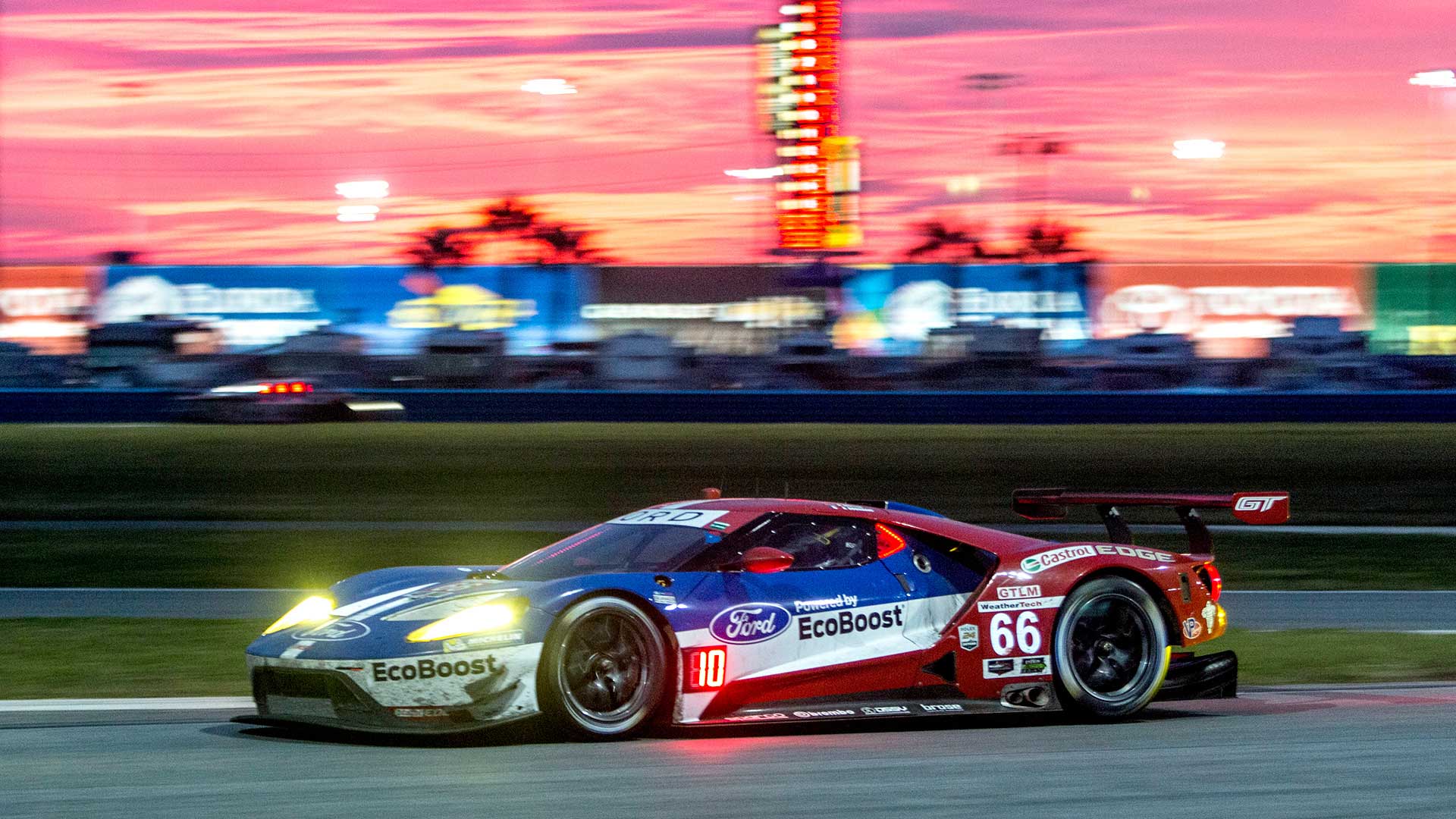 But the biggest story coming into this year’s Daytona was the return of Ford Motor Company to international racing with an all-new Ford GT. Two Ford GTs were entered, No. 66 and No. 67, to celebrate Ford’s Le Mans victories in 1966 and 1967 with the original Ford GT racing car, which anchor what many consider the Golden Age of Racing. The new GT’s debut was timed to the 50th anniversary of Ford’s first Le Mans victory.