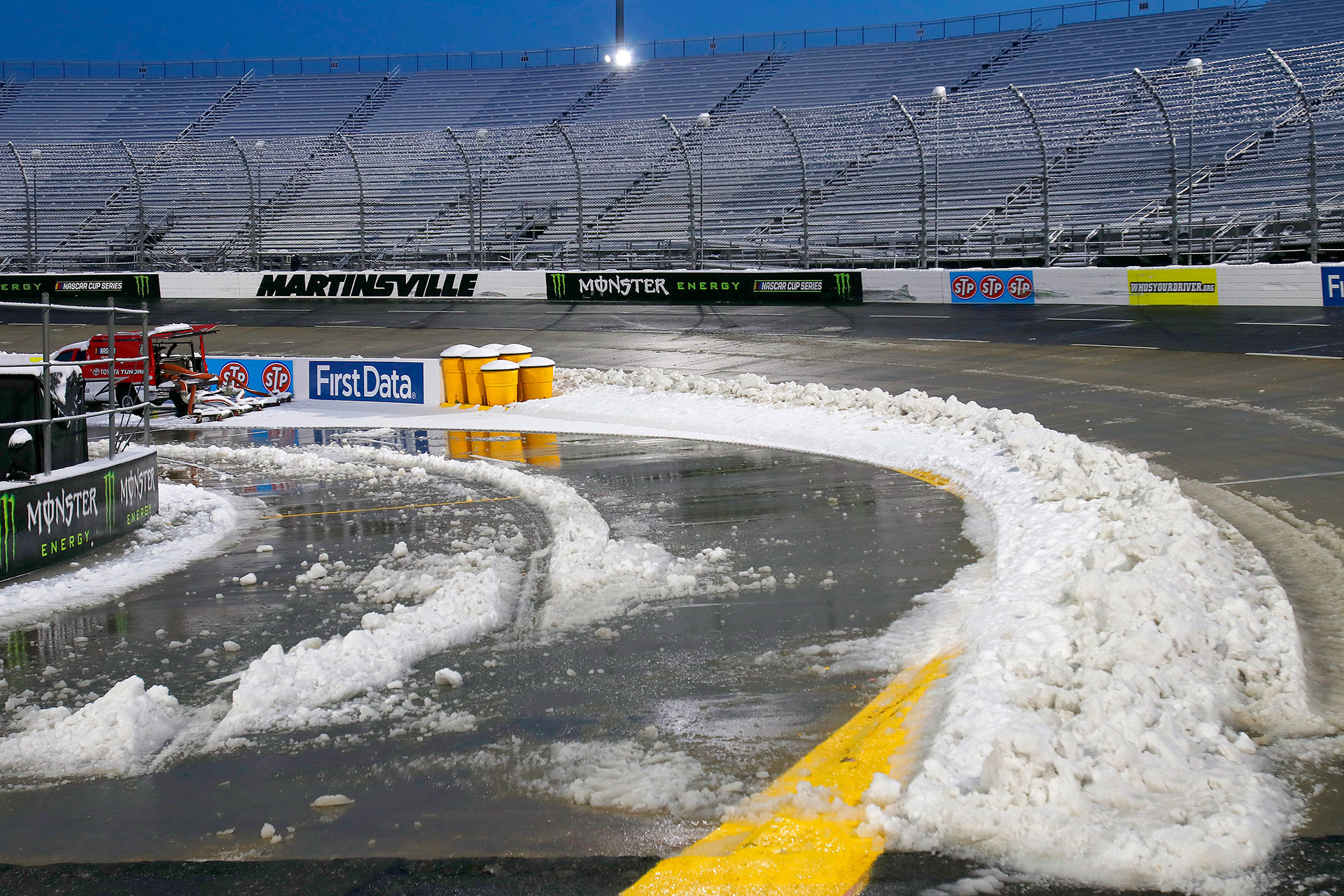 Martinsville is more than a half mile of mayhem, and on top of that, it’s currently a winter playground. Thanks to Mother Nature blessing the track with a few inches of snow, the Monster Energy NASCAR Cup race at Martinsville Speedway was suspended. The forecast showed no signs of inclement weather on race day that would prevent the 500-lap spectacle from going on as scheduled, but the aftermath from the snowfall the day prior proved to be too much to overcome.