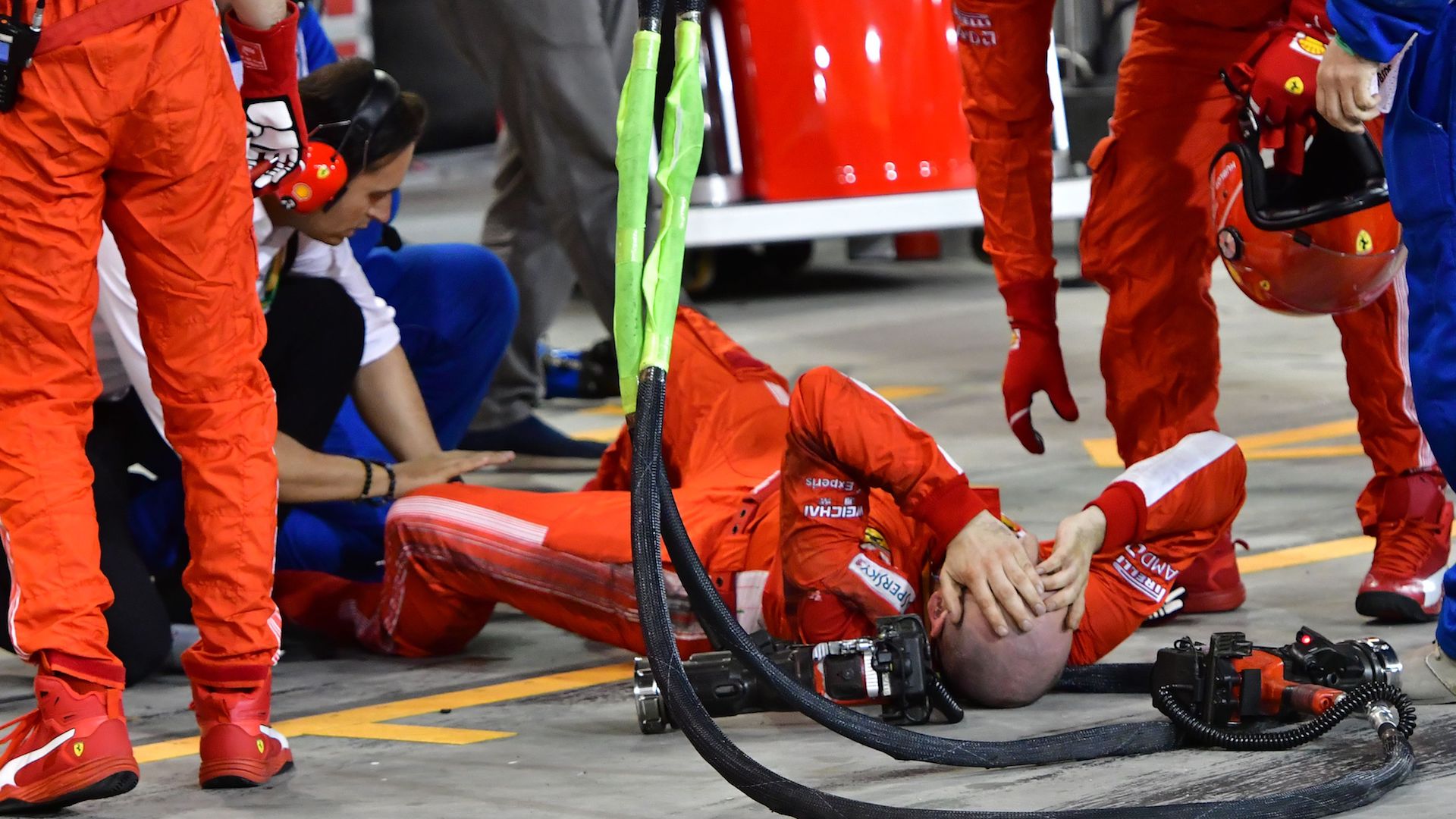 The accident sent Francesco Cigarini, a long-time member of Ferrari’s Formula 1 crew, to the Bahrain Defense Force Hospital with a broken tibia and fibula. Once under the care of the best doctors in the Kingdom of Bahrain, it was determined that Cigarini had to undergo emergency surgery in order reduce the lasting effects of his injury, although it hasn’t been determined when or if he’ll return to the Formula 1 circus anytime soon.