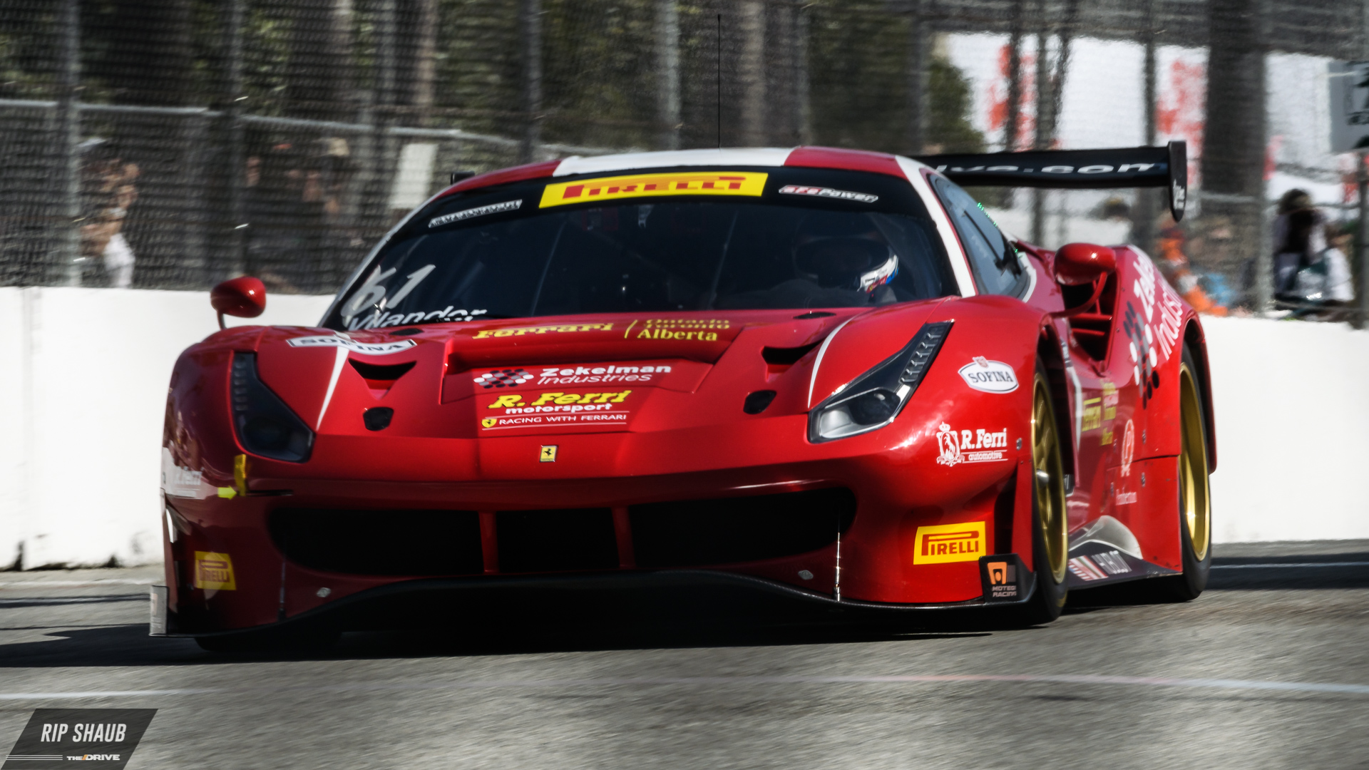 Toni Vilander will start first on the grid for Sunday’s Pirelli World Challenge race around the Long Beach, CA city circuit. He and his No. 61 R Ferri Motorsport Ferrari 488 GT3 Evo managed a fastest lap of 1:18.496, placing the crew ahead of Daniel Morad’s CRP Racing Mercedes-AMG GT3 which will complete the front row.