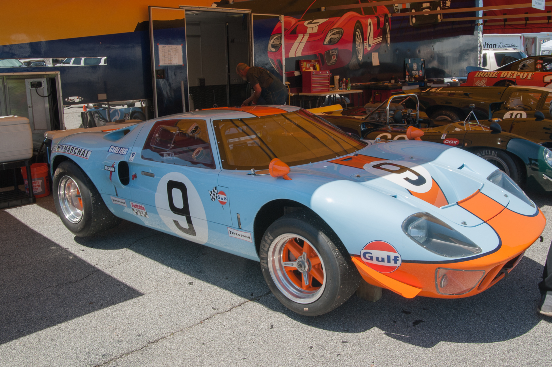 One-upping even the Boss is this GT40. The collaboration between Ford and British car builder Lola beat Ferrari at its own game, and dominated Le Mans in the 1960s. Parked deeper into the infield was a not so distant cousin to the GT40, the 2005 Ford GT.