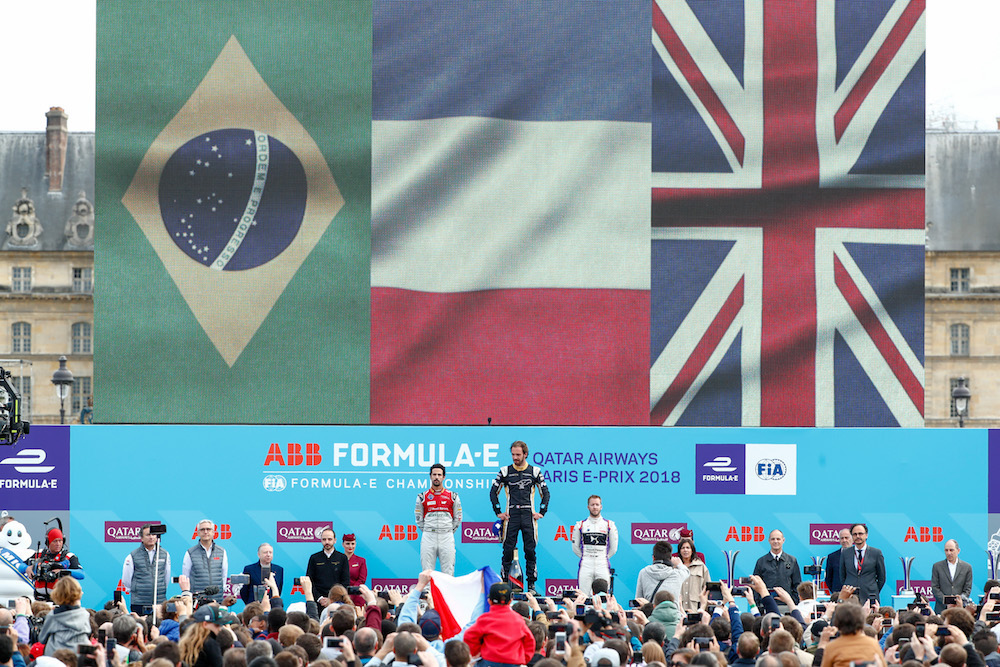 Techeeta’s Jean-Eric Vergne emerged victorious at the 2018 Formula E Paris E-Prix, which was disputed on the same Parisian streets the French racing driver once roamed as a child. The nail-biting round saw plenty of action and several late-race collisions that promoted Audi’s Luca di Grassi and Virgin Racing’s Sam Bird to second and third place.