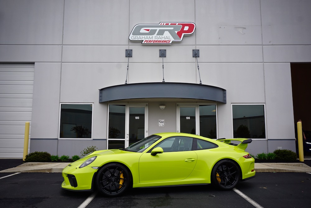 Speaking of performance gains, Rahal directs us to a customer vehicle they had just finished—a stunning light-green Porsche 911 GT3 that came into the shop with just a couple of hundred miles in the odometer. The owner of the Porsche came to GRP looking to enhance his new toy’s performance.
