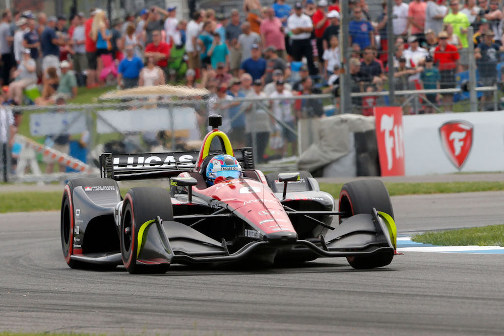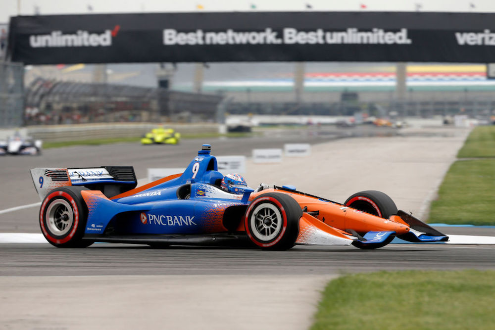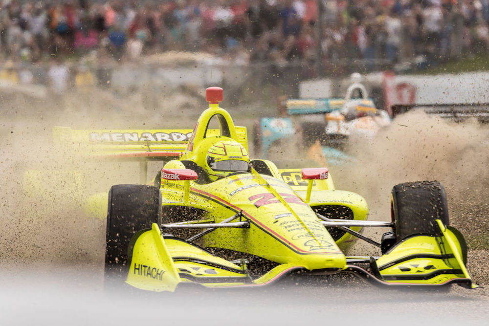 From there on it was smooth cruising for the majority of the field, although pit-stop rotations did cause a few lead changes as the race unfolded. Most of the action took place in the midfield, where a fuel-saving Wickens had to fend off Andretti Autosport’s Alexander Rossi and his SPM teammate James Hinchcliffe for the duration of the race. A full-course yellow flag threw a curveball at the top three runners on lap 56, when the reigning IndyCar champion and current championship leader Josef Newgarden spun on the first turn and stalled his car on the racing line.