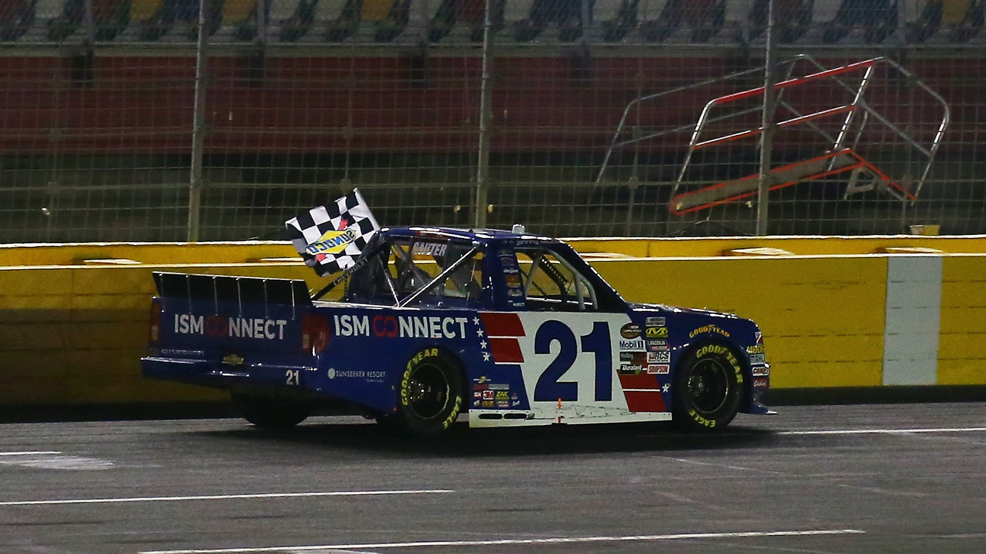 Johnny Sauter led 71 laps of the 137 that made up the NC Education Lottery 200 NASCAR Camping World Truck Series race at Charlotte Motor Speedway in Concord, N.C., on Friday night on his way to his third win in the first seven races of the 2018 season. It was his first-career win at Charlotte.