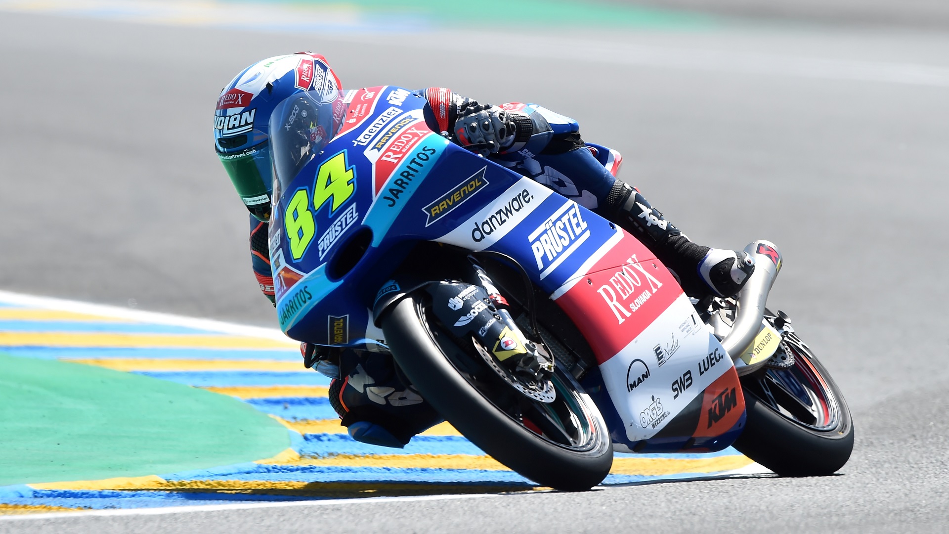 Moto3 racer Jakub Kornfeil made an amazing save during this past weekend’s race at Le Mans, using fallen competitor Enea Bastianini’s motorcycle as a ramp to jump out of harm’s way and continue racing.
