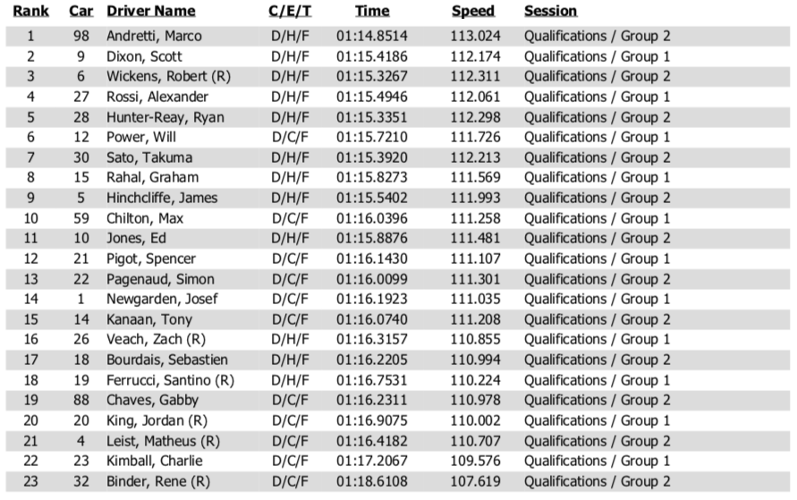 “I’m definitely embarrassed to say that this is my first [road-street pole], but I’ve been outside pole so many times on road and street courses,” Andretti said. “Extremely pleased to execute today. I think yesterday I knew we had the speed…so I knew we had it in the car. All I had to do was execute, and I was able to do that instead of just talking, ‘Oh we would have been first.’ Now we are.”
