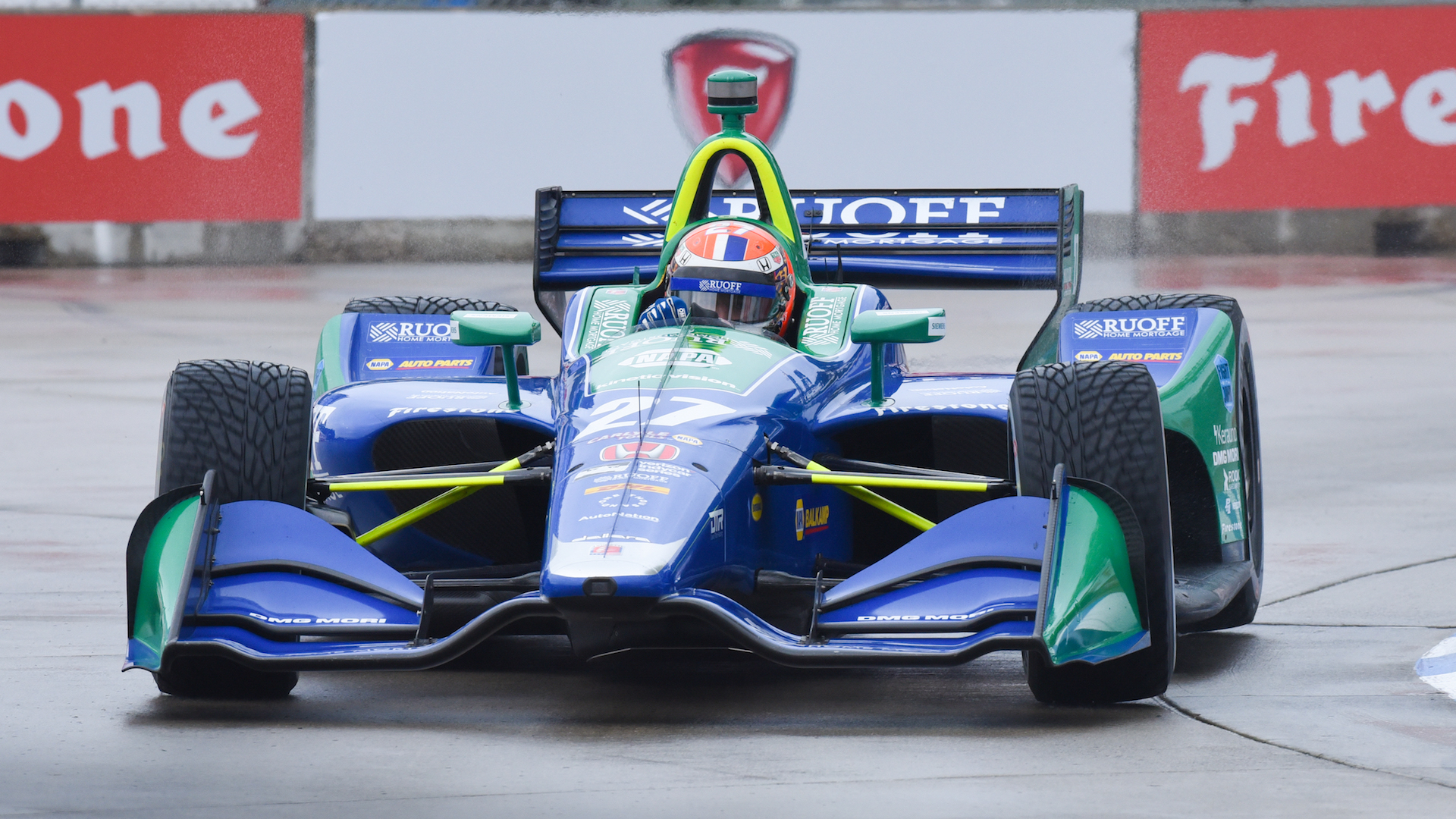 Mother Nature may have brought rain to the streets of Belle Isle, but Andretti Autosport’s Alexander Rossi was more than ready to set today’s qualifying pace after a spectacular performance that saw him finish third place at yesterday’s initial Detroit race. Schmidt Peterson’s Robert Wickens and Penske’s Will Power followed in second and third place.