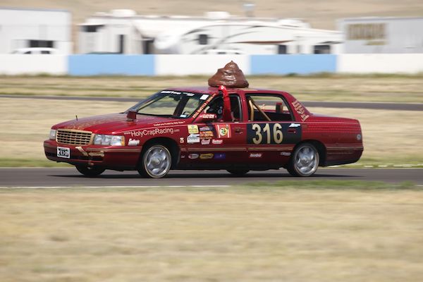 It’s about 3:30 in the afternoon on Saturday, June 9. High Plains Raceway in Colorado drones with the sound of the ongoing 24 Hours of Lemons. Me and teammates Rafi, Rick, and Marcus, along with our Cadillac Deville, sit in a circle. We’re on camping chairs; the car is on jack stands. Our prematurely-ended B.F.E. GP has gone as badly as any first-time racing experience could, and we couldn’t be more excited about coming back in October for the Get Yer Phil 500.