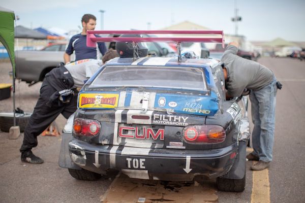 It’s here we reach where this story opened, us kids in a circle, talking replacement engines or starting anew while browsing craigslist. The names LS4, HT4100, and 3.8 supercharged float through the air. Rafi lusts after a Cadillac 4.9 V8, like the one powering the fastest, rattiest car on track: Petrosexual Racing’s #10 Mazda Miata.