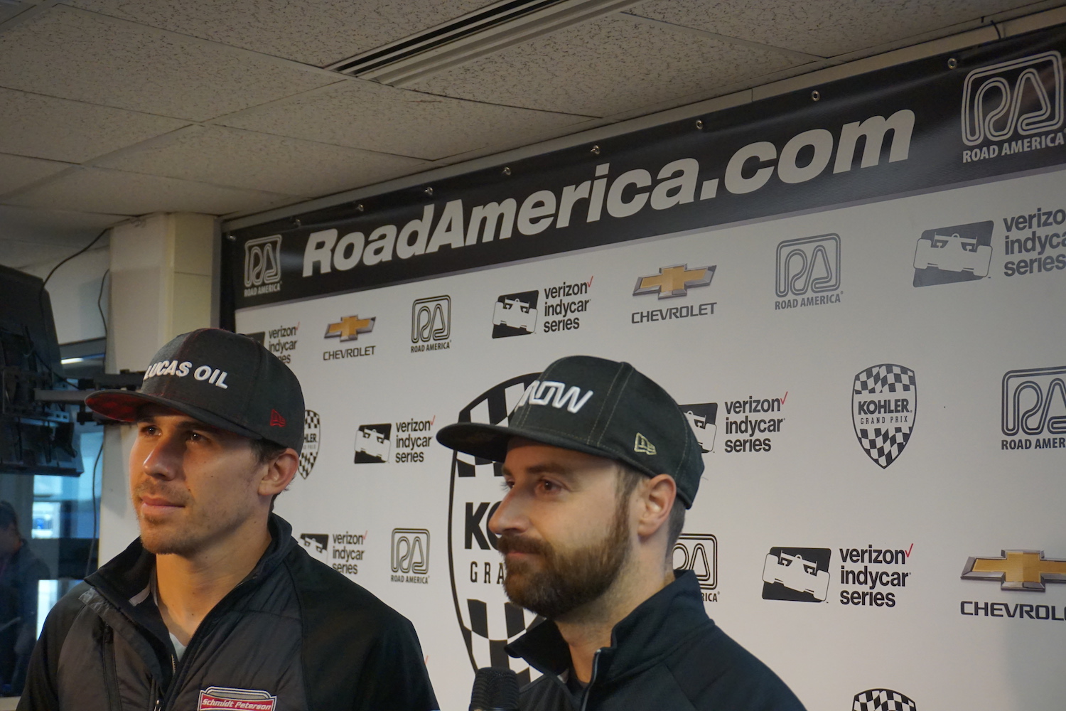 When asked about how he helped Wickens “get here,” Hinchcliffe answered: “Well, we simply convoyed up and drove here.” Everyone at the press conference laughed. Of course, the question was referring to Hinchcliffe’s involvement with his teammate’s decision to come to IndyCar after a successful stint in DTM, not how they got to the track.