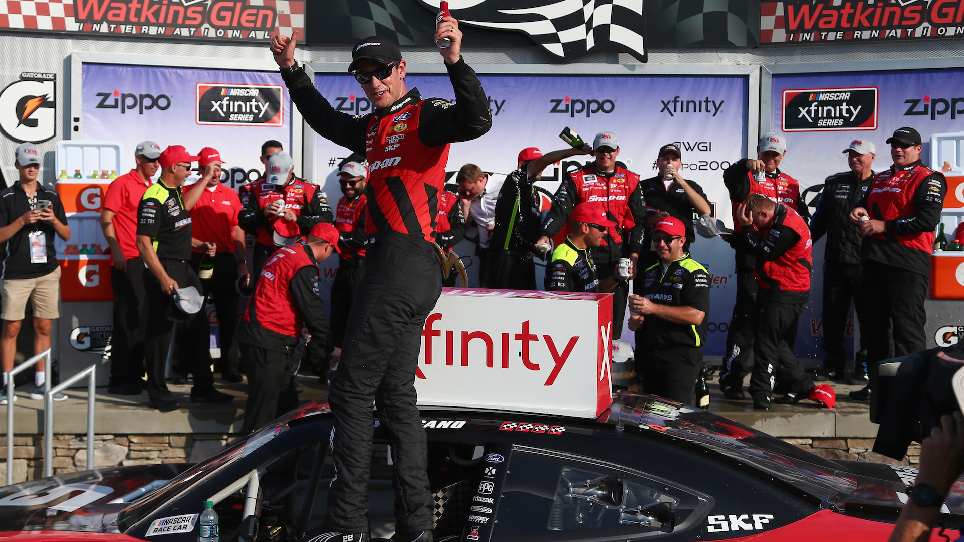 Joey Logano continued his mastery of NASCAR Xfinity Series racing at Watkins Glen International in New York on Saturday, claiming his third win in the last four series races at the track in the Zippo 200 at The Glen.