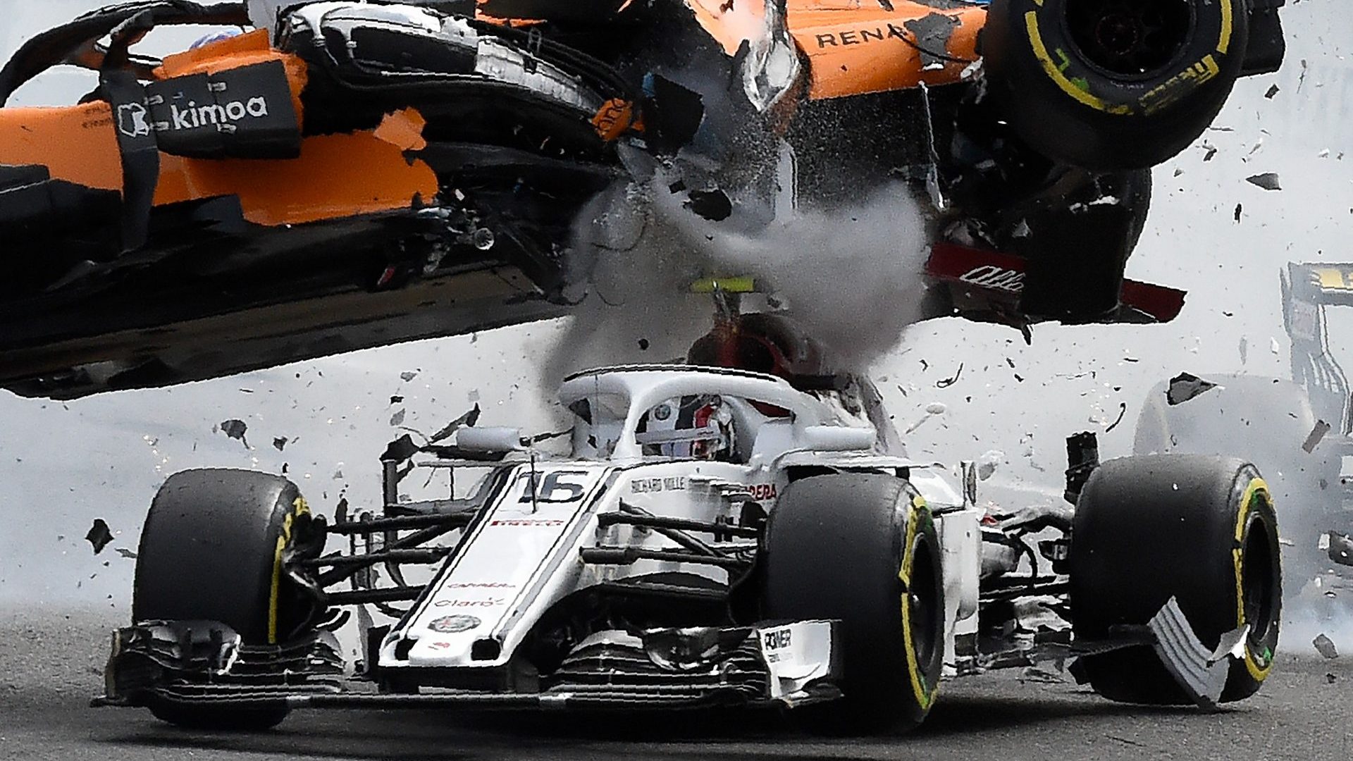 The impact knocked all three cars out of the race, and is estimated by Automoto to have cost 3,665,000 euros ($4.3 million). Inspection of the footage since has revealed that Alonso’s front right tire directly impacted the halo, and did so with enough force to break the McLaren MCL33’s suspension. Had the halo not been there (or not designed to withstand the weight of a bus), Leclerc may have been seriously injured, or worse, killed.