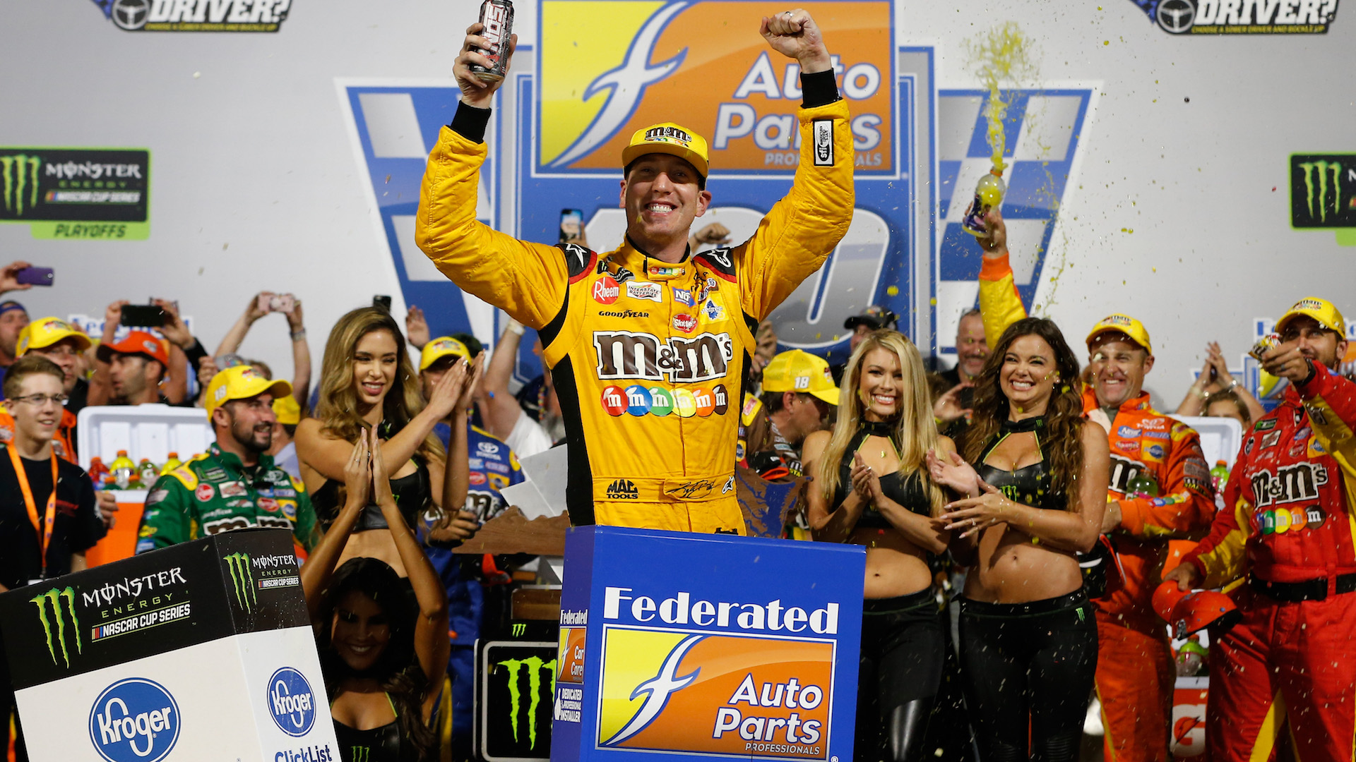 , Kyle Busch celebrates his seventh win of the 2018 NASCAR season after the Federated Auto Parts 400 at Richmond Raceway on Sept. 22, 2018., Getty Images for NASCARThe eventual race winner wasn’t in the top-10 of the running order by the end of the two 100-lap stages that made up the first half of the race, but he was in position to take the lead from Brad Keselowski on Lap 286.