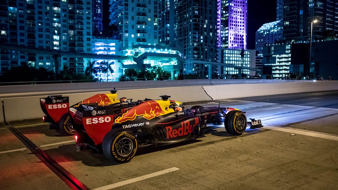 Depicted in the video uploaded to social media by Aaron Carter is a Red Bull Racing F1 car doing hair-raising donuts on top of a skyscraper. The car in question is likely the same as that used in the team’s promotional video from last Thursday, wherein its driver Max Verstappen traversed Colorado’s Rocky Mountains on his way to the beach in Miami.