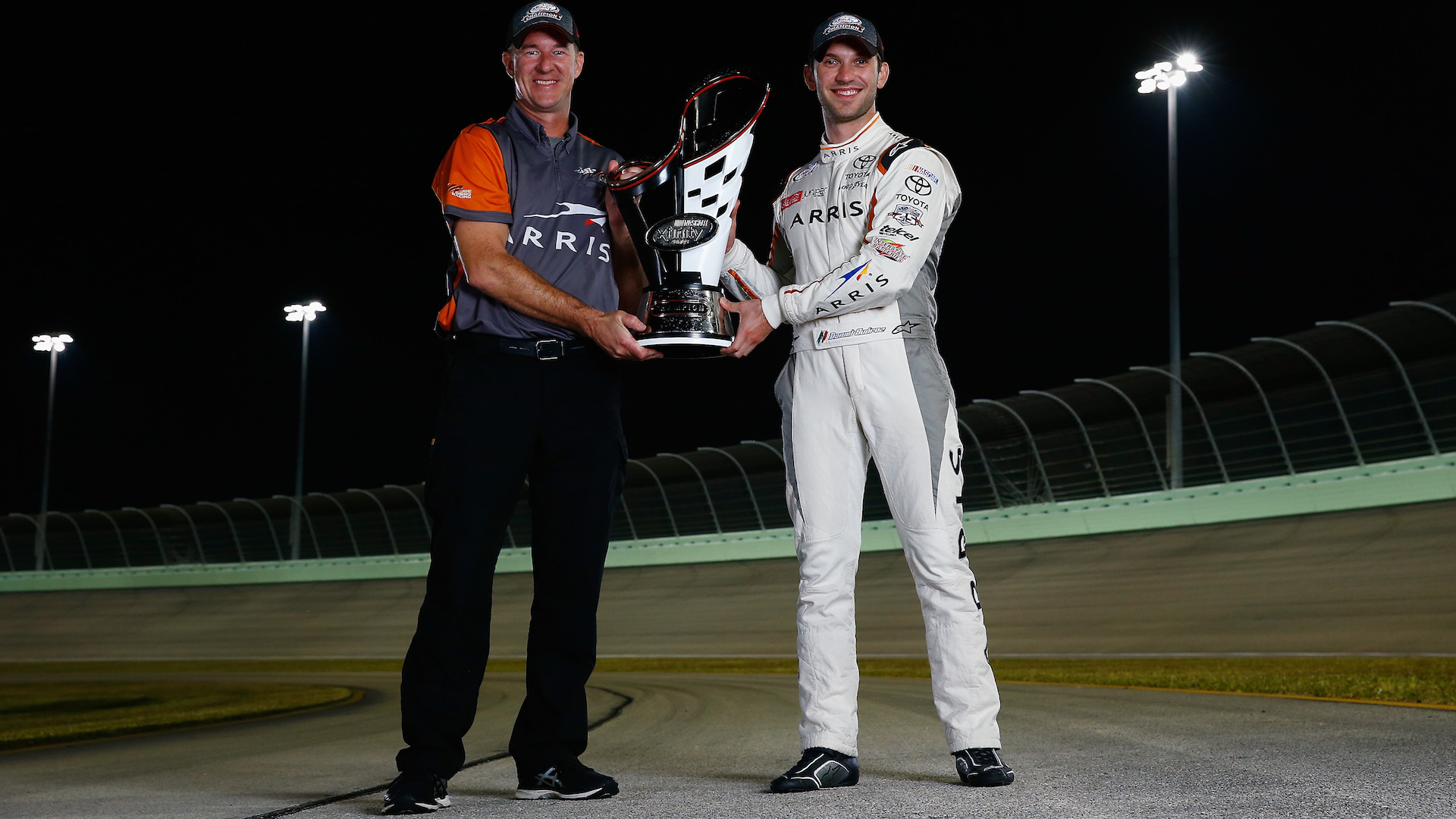 , L to R: Roush Fenway Racing owner Jack Roush, crew chief Scott Graves, and driver Chris Buescher celebrate winning the 2015 NASCAR Xfinity Series championship in 2015., Roush Fenway RacingGraves worked as an engineer and then crew chief with Roush Fenway Racing. As a crew chief, he guided Chris Buescher to the 2015 NASCAR Xfinity Series championship. As a crew chief at Joe Gibbs Racing, he guided Daniel Suarez to the 2016 Xfinity Series title. Graves was a Cup Series crew chief at both RFR and JGR and his most recent stint in the Cup Series began in 2017 when he moved with Suarez from the Xfinity Series to the Cup Series. He was the Cup Series crew chief for Suarez through the first 30 races of the 2018 season before being replaced by Dave Rogers.