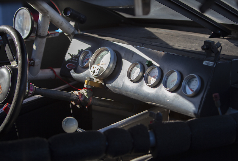 The stock cars are ex-XFinity series chassis modified for school use. They have 383-cubic inch small-block Chevy V8’s making 425 horsepower, four-speed Muncie-type gearboxes, and a solid rear axle with a Ford 9” rear end with a 3.50 final drive. They are remarkably simple, and, as Joe explains, pretty darn bulletproof, even when driven by randoms off the street. The brakes are… mostly there.