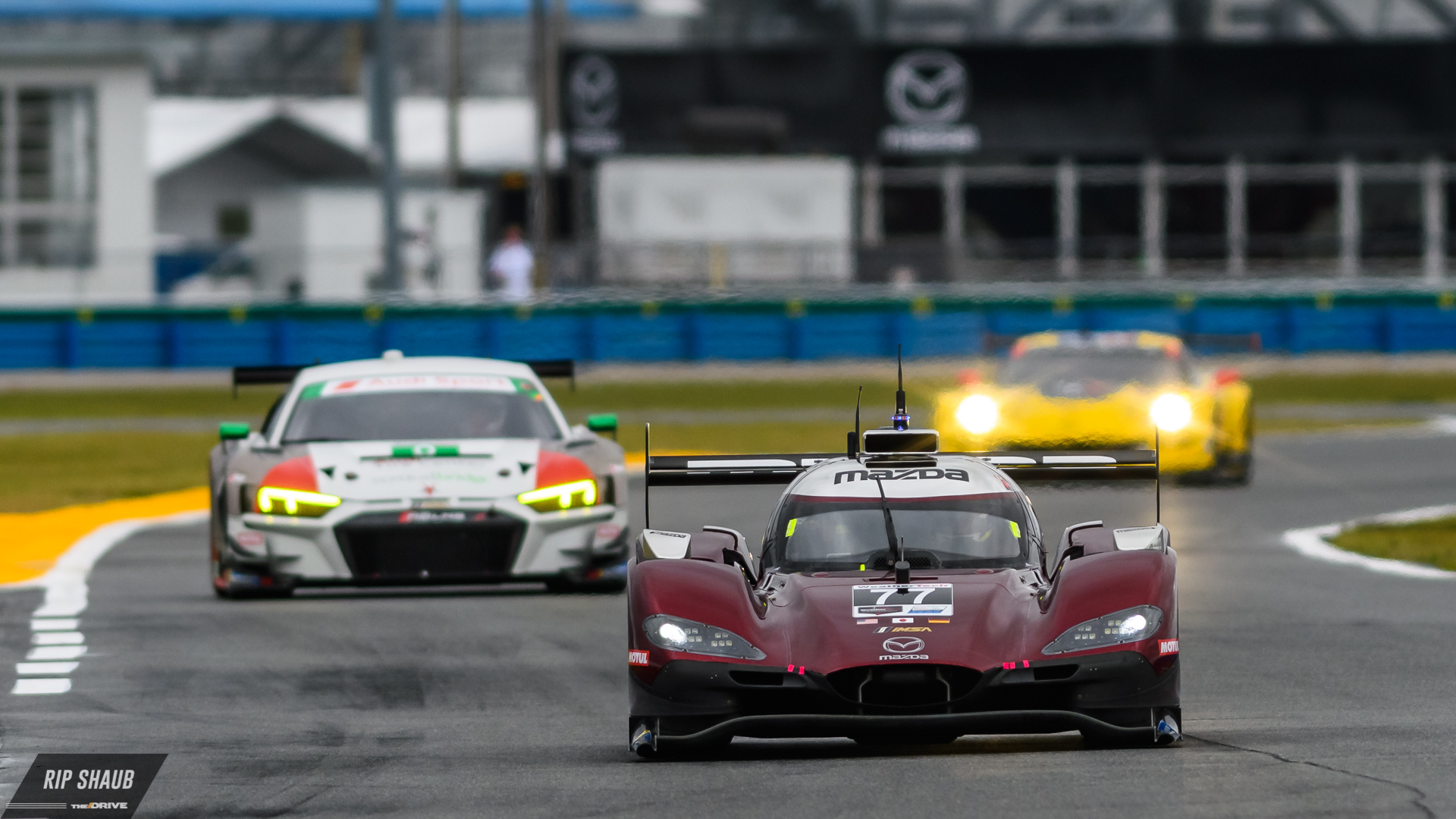 Mazda Team Joest started on pole with its No. 77 Mazda RT24-P DPi and was immediately pitted against the No. 7 Acura Team Penske car as they lined up together on the front row. Early hours of the race saw the two manufacturers swapping positions while simultaneously battling off the charging Cadillacs.