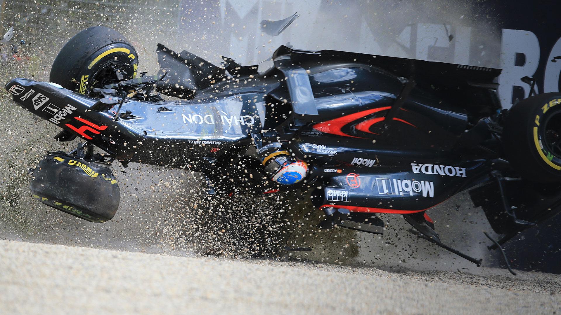 Odds are good you’ve caught word of Fernando Alonso’s spectacular crash at this weekend’s F1 Australian Grand Prix. Seventeen laps into the race, the former World Champion collided with the Esteban Gutierrez; the impact sent Alonso’s car bouncing off the wall, into a gravel trap, and flipping ass-over-teakettle, coming down a good six or seven car lengths from the track. Amazingly, Alonso was unhurt in the accident, and managed to crawl away from the wreck almost immediately. Gutierrez, who was also unharmed, rushed over to check on him.