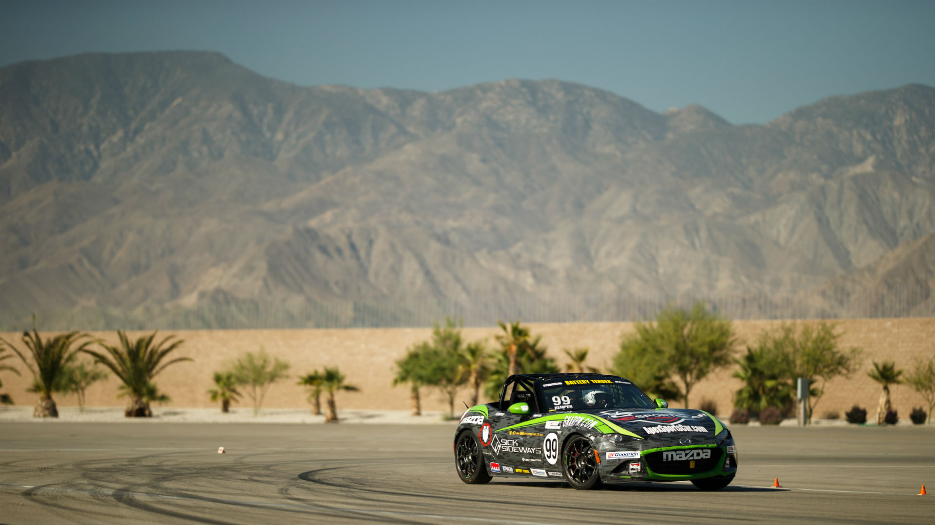 In preparation for his test in a real Global MX-5 Cup car, Clampitt was loaned a Mazda MX-5 RF for a week so he could practice driving with a manual transmission, something he’d never done until then. Afterward, he met with former Mazda prototype driver Joel Miller at Thermal Motorsports Park in California to get behind the wheel.