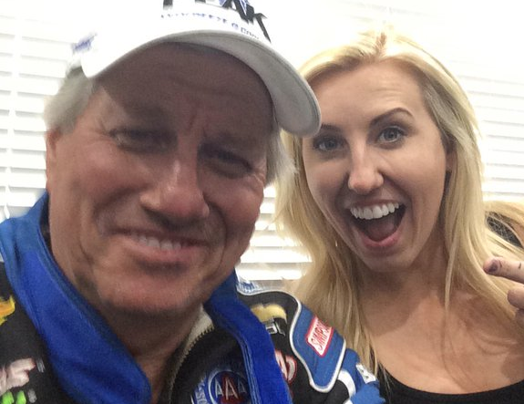 Said Elon Werner, public relations director for John Force Racing: “Force is tweeting all content himself. It took 25 minutes for him to type his first tweet with one index finger. (Daughters) Courtney and Brittany both have video of this event on their Instagram accounts. It was funny and painful. It took him almost as long to take the selfie which he also did himself. These are all firsts for Force since he has never even sent a text before today. I promise this will all be Force, so like him, it will be sporadic and over the top.”
