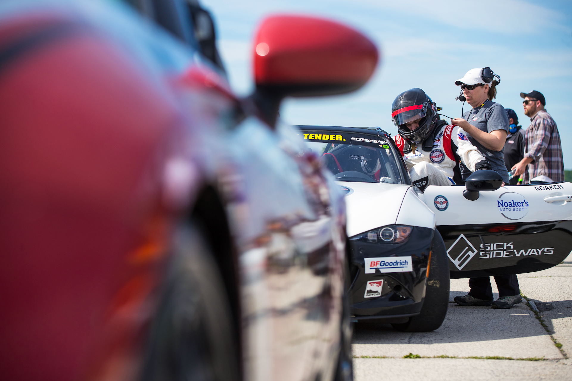 Fast forward to June 2019, Noaker’s second year in the MX-5 Cup. I’m standing next to him in his race trailer. He’s already been at Road America for two days with the rest of his Sick Sideways team, led by MX-5 Cup veteran John Dean II, and he’s anxious to hit the track. We exchange a few words as Katie cleans the MX-5’s windshield lovingly and Robert talks to me about their weekend plans. Noaker steps away to chat with his teammates about the upcoming 20-minute qualifying session, which at a 4.04-mile road course like Road America isn’t a lot of time.