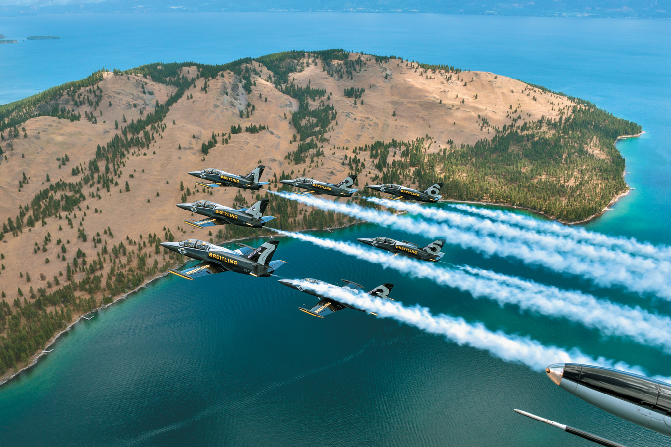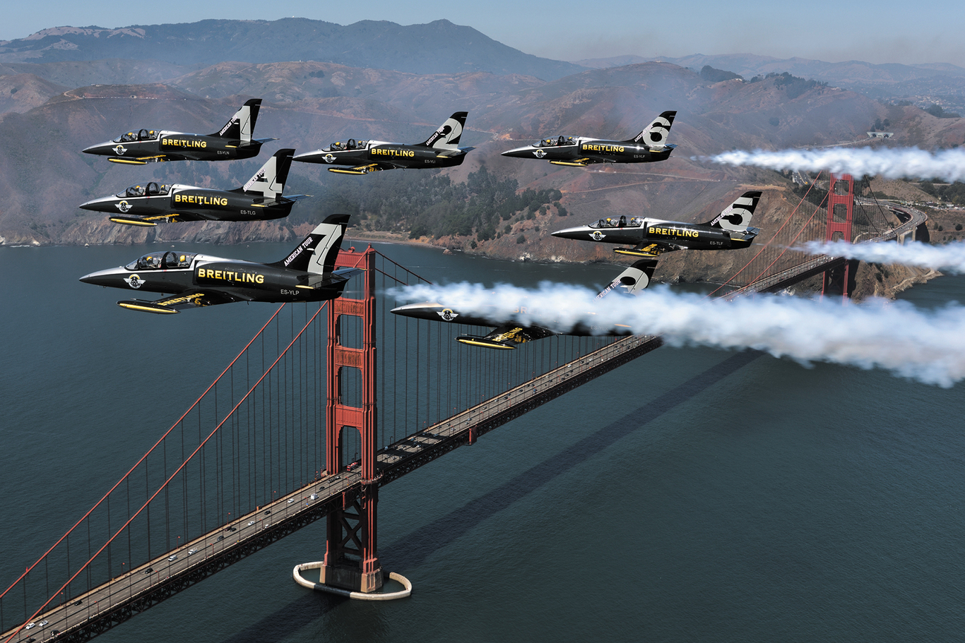 The Breitling Jet Team is back. For the second time, the luxe watchmaker will unleash its squad’s wild, unique brand of aeronautical theatrics at America’s most scenic spots. Slated as the “largest civilian aerobatic team,” the outfit puts some of the world’s sharpest aces, most of them from the French air force or Patrouille de France, on display. Seven pilots, all flying sleek, military-spec L-39 C Albatros aircraft. The Czech-made twin-seater is a clever, precise thing in the hands of a crafty pilot. And the BJT doesn’t do half-trot; the formations are complex, and speeds during demonstrations reach 565 mph.