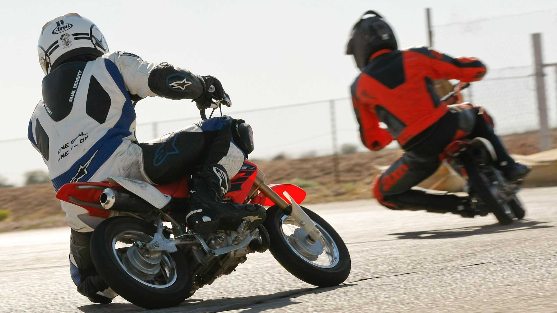 Dragging knee. It’s a rite of passage, something you start hunting the second you saddle up a motorcycle. Self-taught in canyons on 600cc sportbikes, the way I did it, it’s a thing that’ll take time and subject you to enormous risk. On a tiny motorcycle, inches from the ground, with good instruction and little but pride at stake? Half an hour. Tops.