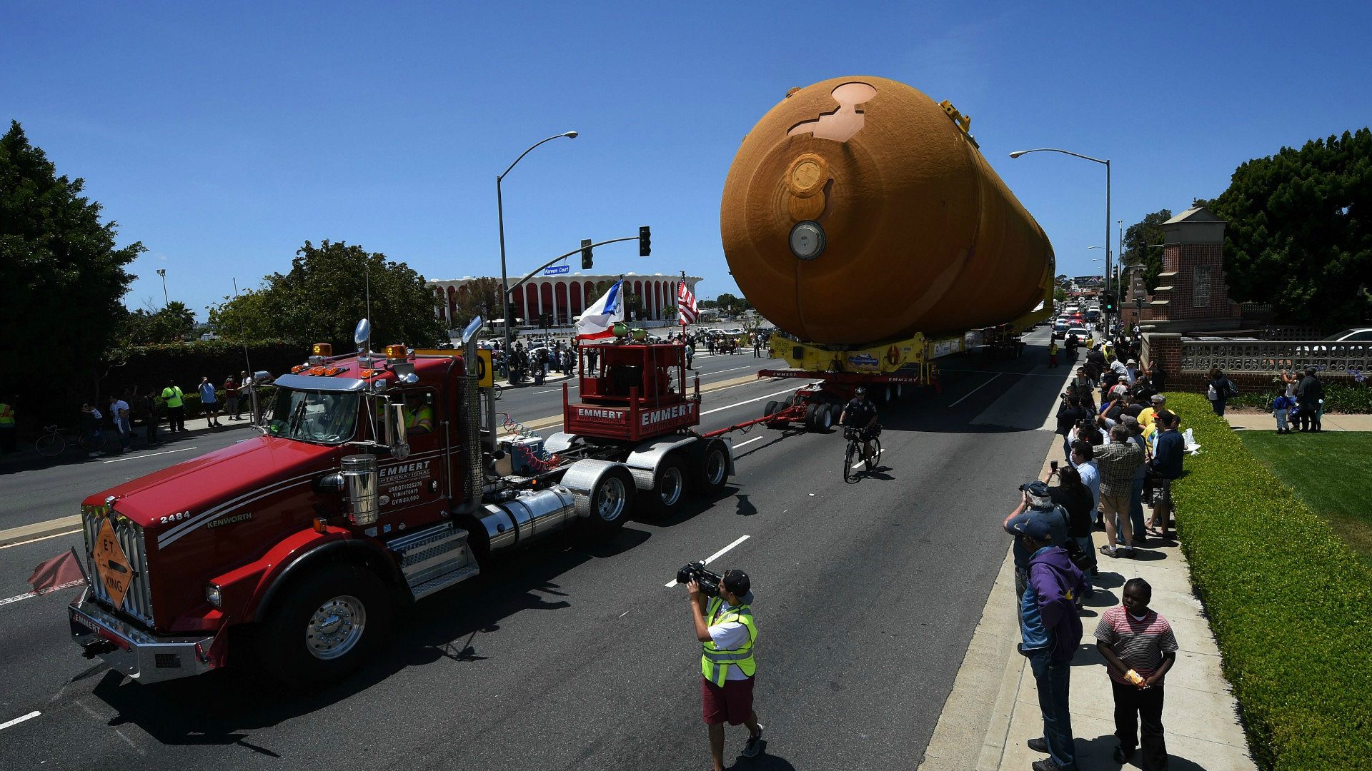 People have been calling it The Space Banana. But ET-94, the last remaining external fuel tank from NASA’s space shuttle program, isn’t actually yellow. It’s orange, a kind of rust color. It’s never actually been to space, either. Still, the thing’s 15 stories tall and weighs over 32 tons. Laying flat, it’s roughly as long as football field. So when ET-94 came parading through the streets of Los Angeles this weekend, people took notice.