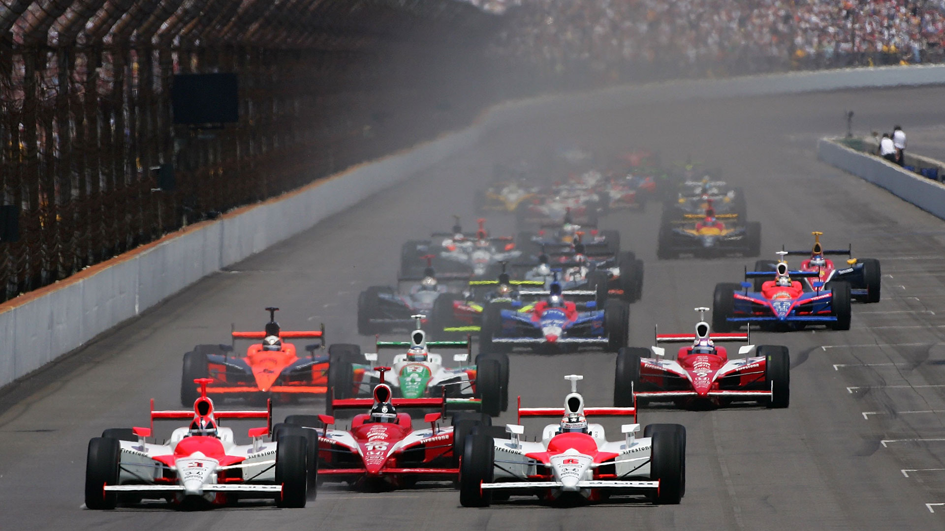 Would Michael snatch the checkered flag from his rookie son? Would Marco have the nerve to go all the way? Would Hornish outmatch them both? What resulted was the second closest Indy finish ever to that point—a margin of victory of 0.064 seconds—with a leader change just feet from the finish. Pick up the action here, with four laps to go: