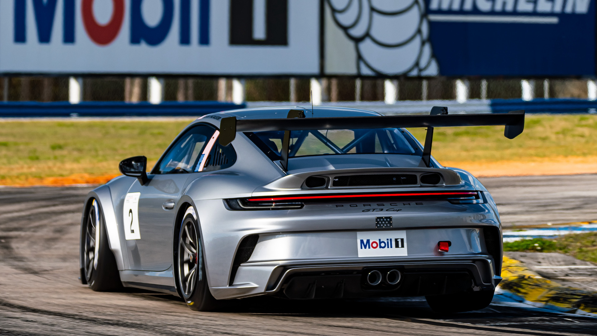 It’s only just over an inch wider than the previous car at the back but has a “significantly broader” front axle, making it better for racing and a lot nippier on the Michelin N3 tires the series has opted for. There isn’t, inevitably, a Sebring time for the previous generation—since this is Carrera Cup’s first North America season—but the best time in qualifying so far was a 2:03.109 set by 20-year-old British pro driver Sebastian Priaulx, who’s previously competed in the U.S. for Ford in last year’s IMSA Michelin Pilot Challenge.