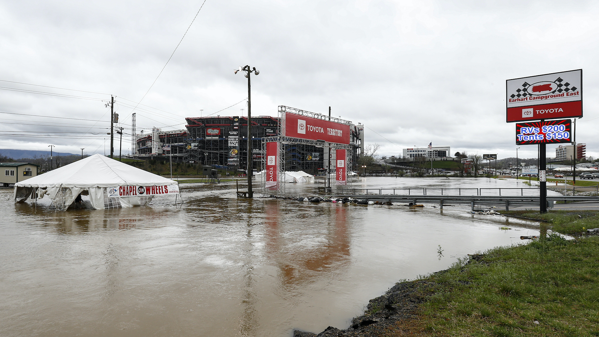 By the time track officials registered three inches of rainfall on Sunday morning, the National Weather Service had issued a flash flood warning for the area, one proved prophetic by photos captured that day. In images and video taken Sunday, Bristol Motor Speedway’s carefully prepared premises can be seen flooded, standing water swamping the road to the track and an area reportedly occupied by vendors’ tents. Accordingly, NASCAR postponed both its Truck and Cup series races to Monday, scheduled for 12 and 4 p.m. ET respectively.