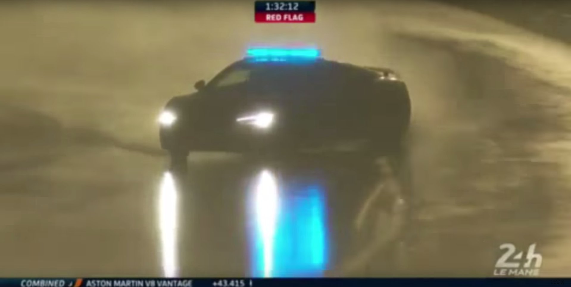 Yes, the safety car. The one that does parade laps around the circuit when there’s a wreck. Or, in the case of last night’s pre-race practice session, a torrential rainstorm. Said safety car at Le Mans 2016 is a new Audi R8 V10 Plus. As you’ll see in the clip below, the driver comes in a little too hot under a red flag caution. The back end comes out. Heroics ensue.