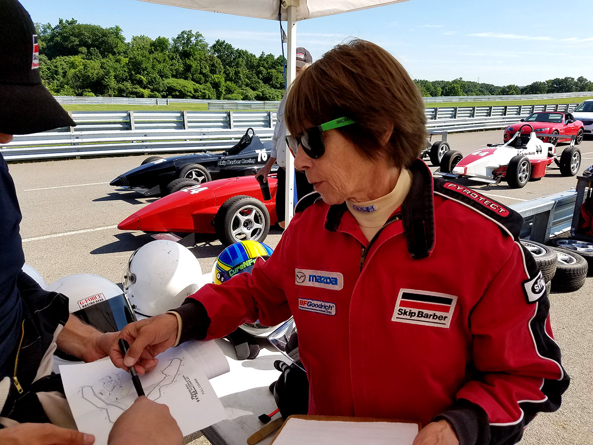 The oldest was Brian Miller, a 71-year-old who happens to own the same car as me, a 1993 twin-turbo Mazda RX-7. Instructor Davina Galica is also 71, a three-time British Olympian and Alpine skier who set a downhill speed record of 125 mph—at age 50. Galica didn’t drive her first race until her late twenties, a celebrity event that led to a career in Formula cars, sports cars, and trucks, including podiums in the old British Shellsport Championship and a few qualifying bids in F1, sharing a track with Niki Lauda, Mario Andretti, and James Hunt. “I had stopped skiing and was running a ski shop in London,” Galica says. “But I’m a competitor, and motor racing gave me that outlet.”