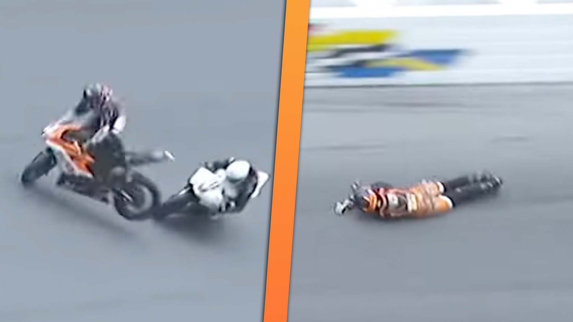 Miranda was completing a qualifying run when the crash took place, and even though a handful of riders crashed behind him, it could’ve been way more severe if they were racing in a pack. The track surface was wet and while it’s difficult to say just how fast he was going, Miranda estimates he was running around 150 mph.