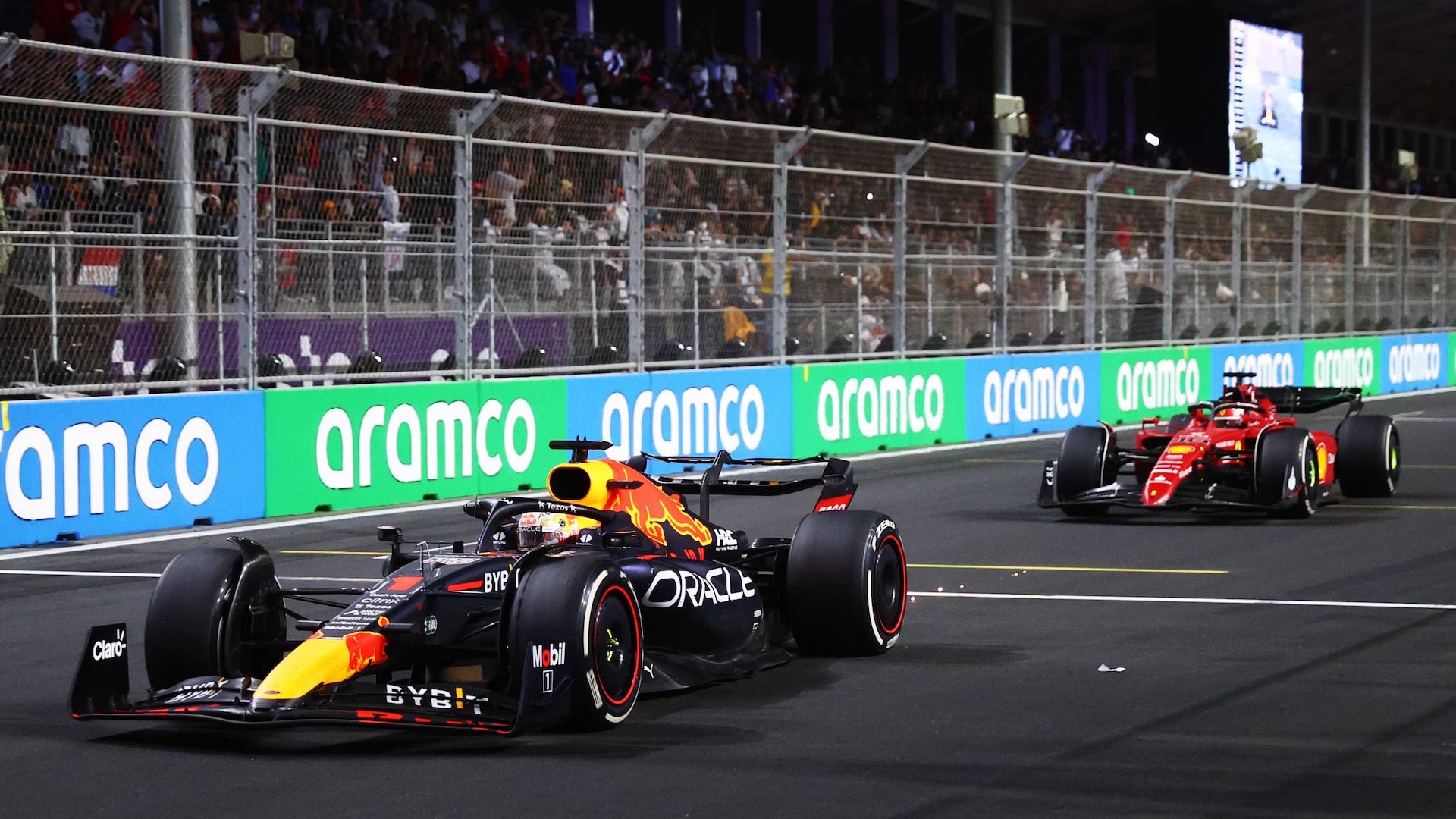 However, in lap 46, Verstappen, with a patient move also using his DRS advantage at the perfect time, was able to pass Leclerc and hold enough margin to the Monegasque as the race wound to a close. The two battled hard and, as Leclerc fought to regain his lead, Verstappen could be heard over the radio complaining of Leclerc going too fast through a yellow flag. Despite Leclerc pushing as hard as he could, though, Verstappen never let go of his lead and took the win in Saudi Arabia.