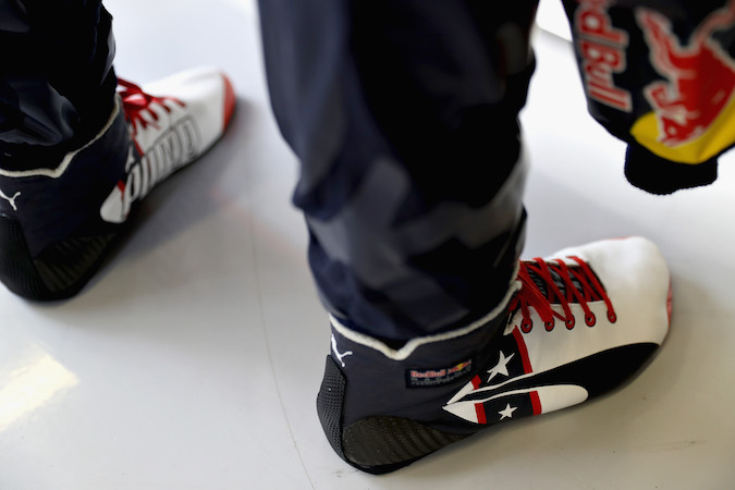 Red Bull's drivers rocked the U.S.A. kicks. Super duper fresh. , Mark Thompson/GettyLights out! The race got off to a hectic start. Sergio Perez hit Daniil Kvyat; Valtteri Bottas suffered a nasty puncture; and Nico Hulkenberg's day ended early. Who go away clean? Mostly Lewis Hamilton. , Lars Baron/GettyYou had to feel for Max Verstappen. In rapid succession, the teenage prodigy: (1) Laid down the day's fastest lap, (2) Pitted to find his team wasn't ready, and sat while they scrambled to change his tires, (3) Retired due to catastrophic engine failure. , Mark Thompson/GettyCircuit of the America's blue flag system, new for this year, basically blew itself up trying to keep backmarkers out of the way. Blue flags, Team Renault. Blue flags everywhere. , Peter J. Fox/GettyKimi Räikkönen's was released from the pits with only three wheels tightened. That's one less than needed, if you're counting along at home. Being Kimi, he peeled out, realized something was amiss, and proceeded to reverse (a long way) back to the pits. No luck. The Iceman's day ended early., Lars Baron/GettyDaniel Ricciardo put in work, keeping on Nico Rosberg's tail, and giving it a decent run in the race's closing act. But with the Mercedes cars in their own league, Red Bull is mostly taking on Ferrari; Sebastian Vettel finished fourth, but didn't look to be in serious contention. Seriously, guys: Other F1 tracks do not look this cool in photos., Mark Thompson/GettyBraking problems continued to bother the hometown Hass F1 Team. Esteban Gutiérrez was forced to retire early, but Romain Grosjean held on for tenth place, scoring points for the fifth time this season. , Clive Rose/GettyBut this one was all Lewis Hamilton. He was in another galaxy, slowing toward the end, but leading his teammate by as much as ten seconds for extended intervals. , Clive Mason/GettyAnd so he took the win, joining Alain Prost and Michael Schumacher as the only drivers in F1 history with 50 first-place finishes to their credit. , Peter J. FoxHamilton, the defending World Champion, keeps his title hopes alive. Daniel Ricciardo drinks from his shoe on the podium. Taylor Swift plays a live concert, Circuit of the Americas announces record-breaking attendance for the race (269,889) and all is right with the world., Mark Thompson/Getty