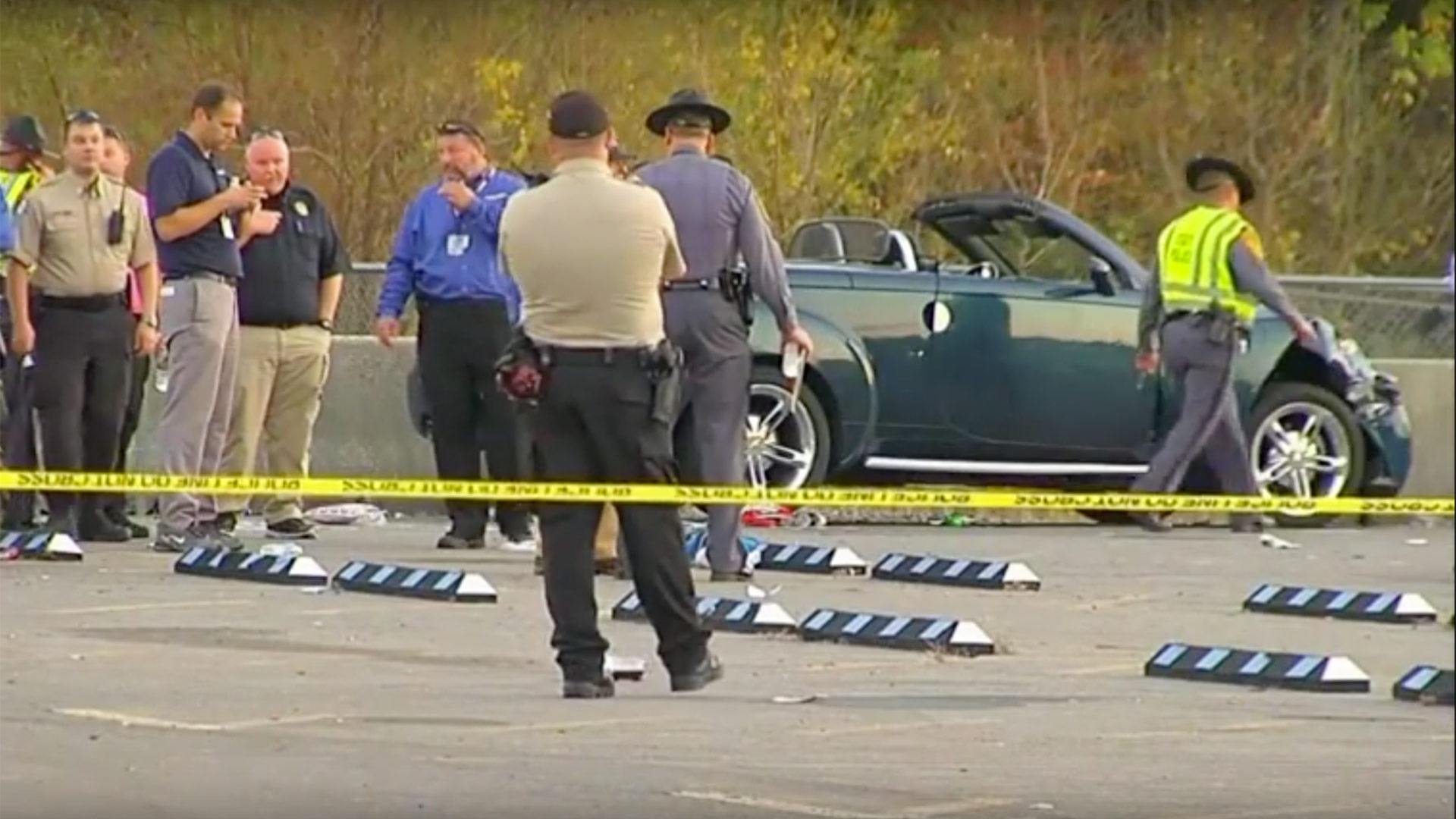 In a bizarre postscript to Jimmie Johnson’s win Sunday at Martinsville Speedway, 22 fans were struck in the Martinsville parking lot after the race by the driver of a blue Chevrolet SSR, who pulled out of a line of traffic and plowed into pedestrians standing near the track’s helipad.