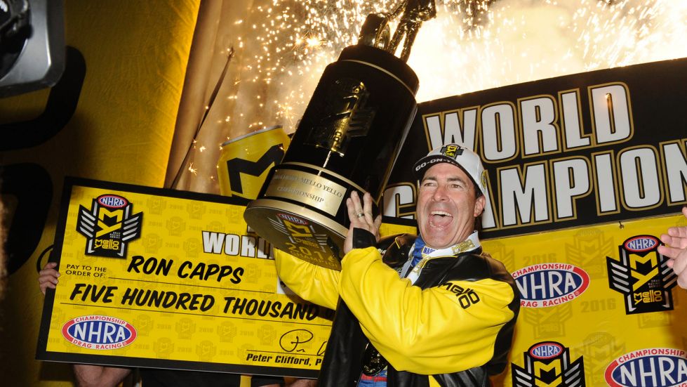 The feel-good story of the championship battle, though, has to be Ron Capps, who began racing in the NHRA Pro series in 1995, moving to Funny Cars in 1997. He has 49 wins in Funny Car, and he finished second in points four times before winning the championship this season.